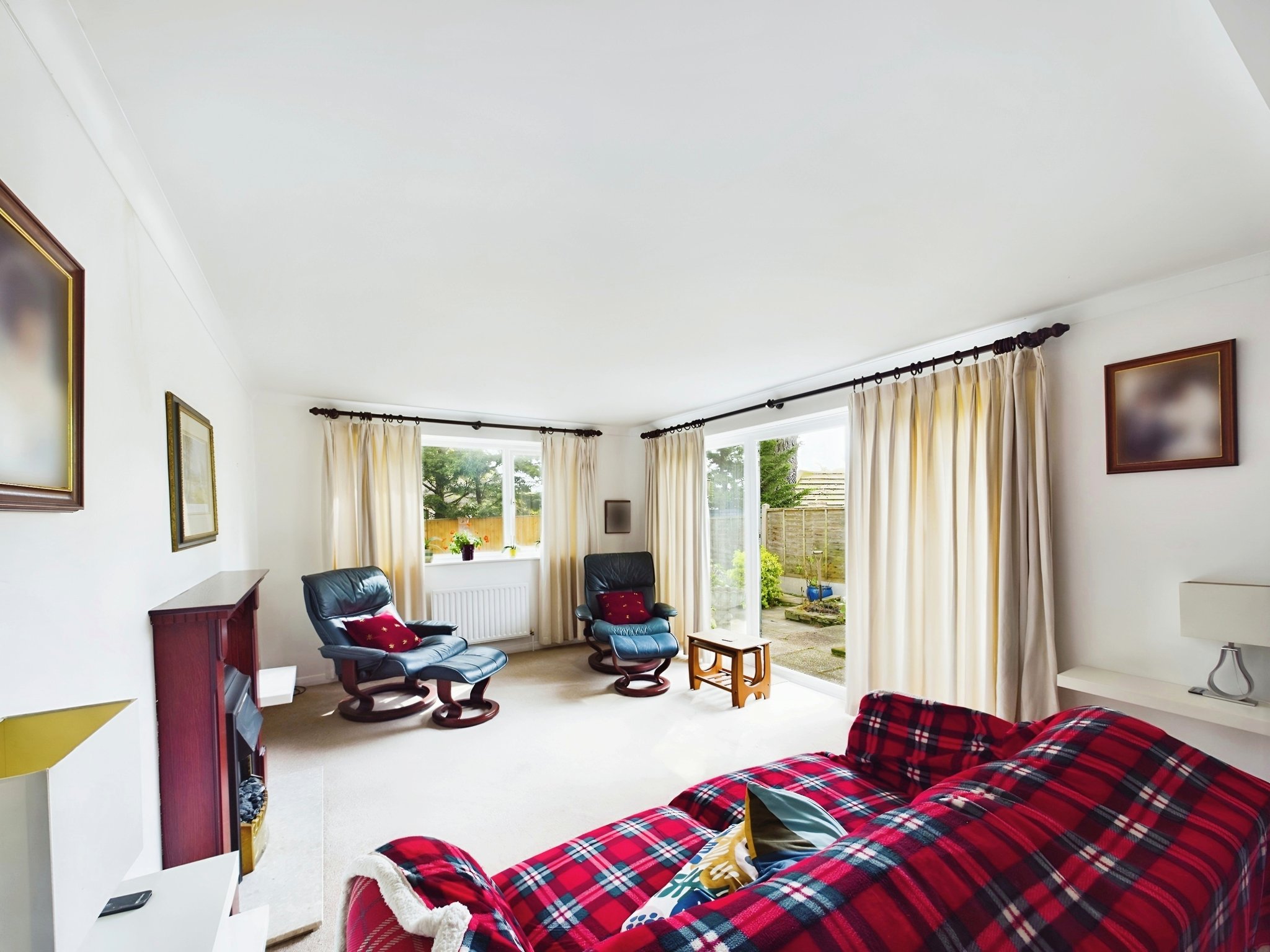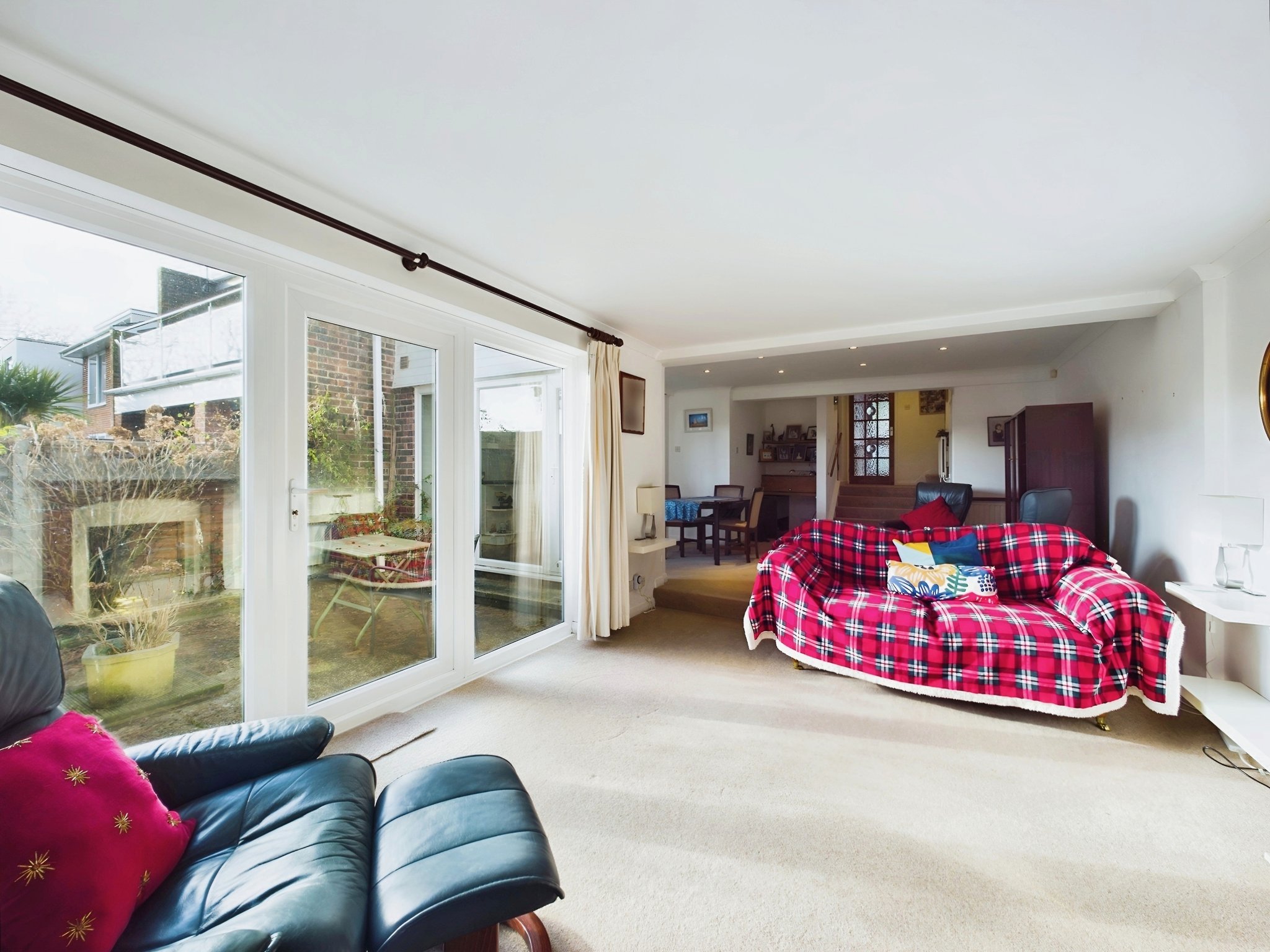 The lounge area, at the rear of the property, is currently configured as open plan lounge/diner. Carpeted throughout, the light and airy living area boasts dual aspect windows and a door opening onto the terrace. There is a step up to the dining area which flows into the kitchen, with a further door opening onto the terrace. An understairs cupboard houses the Vaillant gas fired boiler.