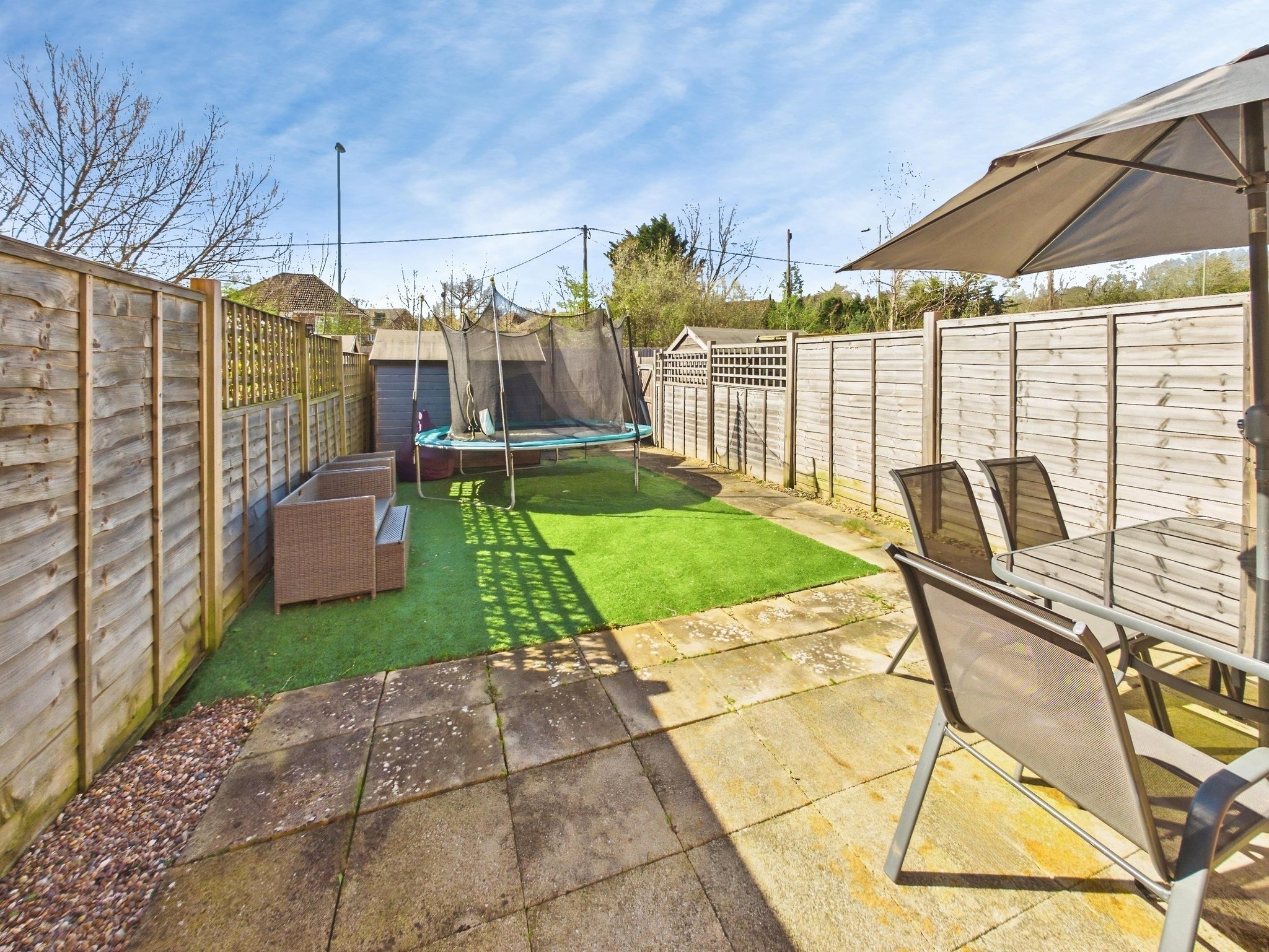 The rear garden is enclosed by timber fencing with a pedestrian gate to the rear. The garden is laid to artificial lawn with a paved patio area offering a beautiful spot for outdoor entertaining and al fresco dining.