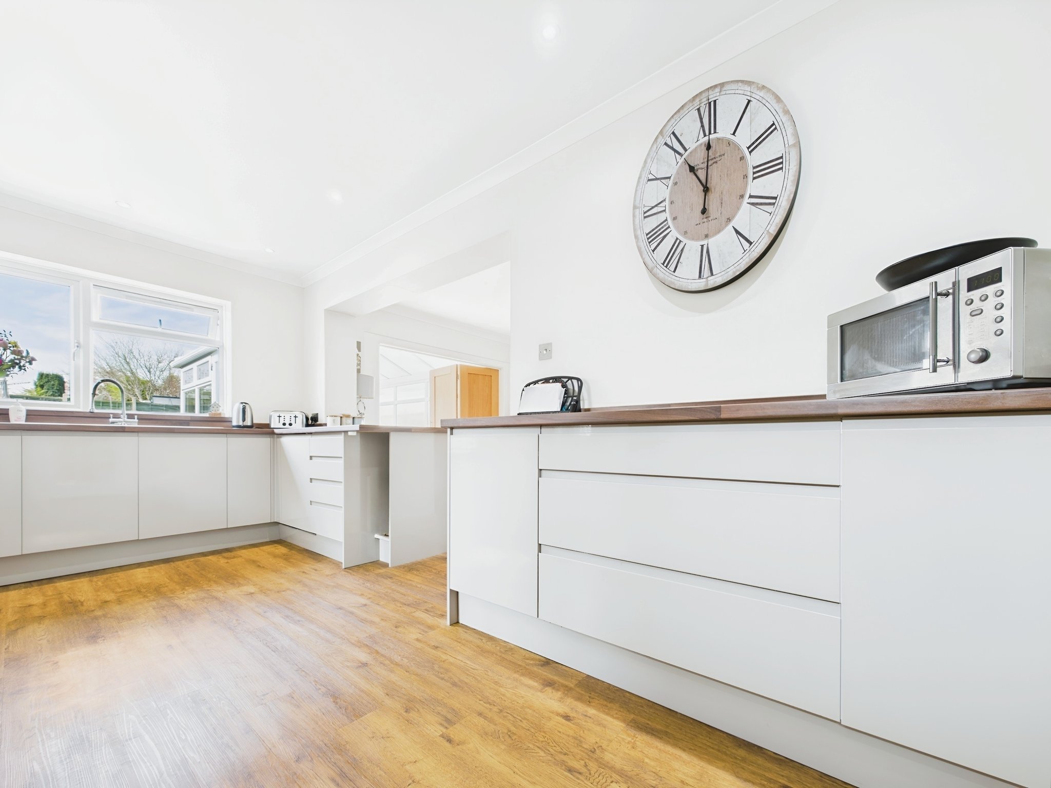 The property is approached by a driveway providing off road parking and leading to a garage, which retains and up and over door to the front aspect and a pedestrian door to the side. The front garden is largely laid to lawn with a mixture of trees and shrubs. The rear garden is enclosed by timber fencing and predominantly laid to lawn. There is a raised wooden decked terrace and a patio area, both offering the ideal spaces for outdoor entertaining and al fresco dining.
