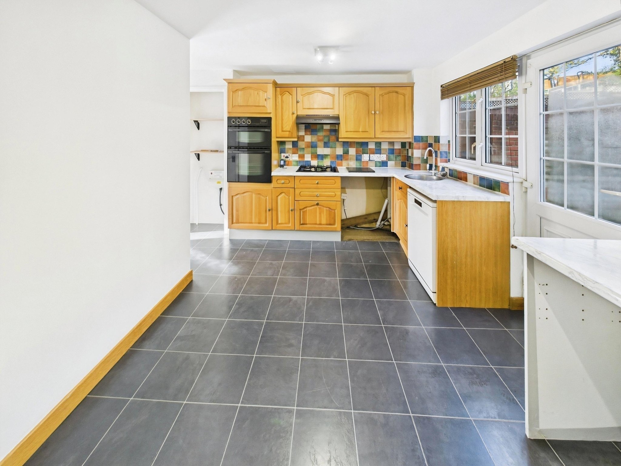 Upon entering the property you are greeted by a porch offering space to remove your outdoor wear and providing access into the living room and cloakroom, comprising a wash hand basin and WC. The well-proportioned living room is perfect for relaxing at the end of a busy day. There is a front elevation window and turning stairs rising to the first floor. A useful understairs cupboard offers handy storage. A door opens into the kitchen breakfast room which comprises a range of matching, shaker style, wall and floor mounted units with a worksurface over. A rear elevation window and door open out to the rear garden. There is a built-in oven and grill, four ring gas hob with an extractor hood above, space and plumbing for white goods and a stainless-steel bowl sink.