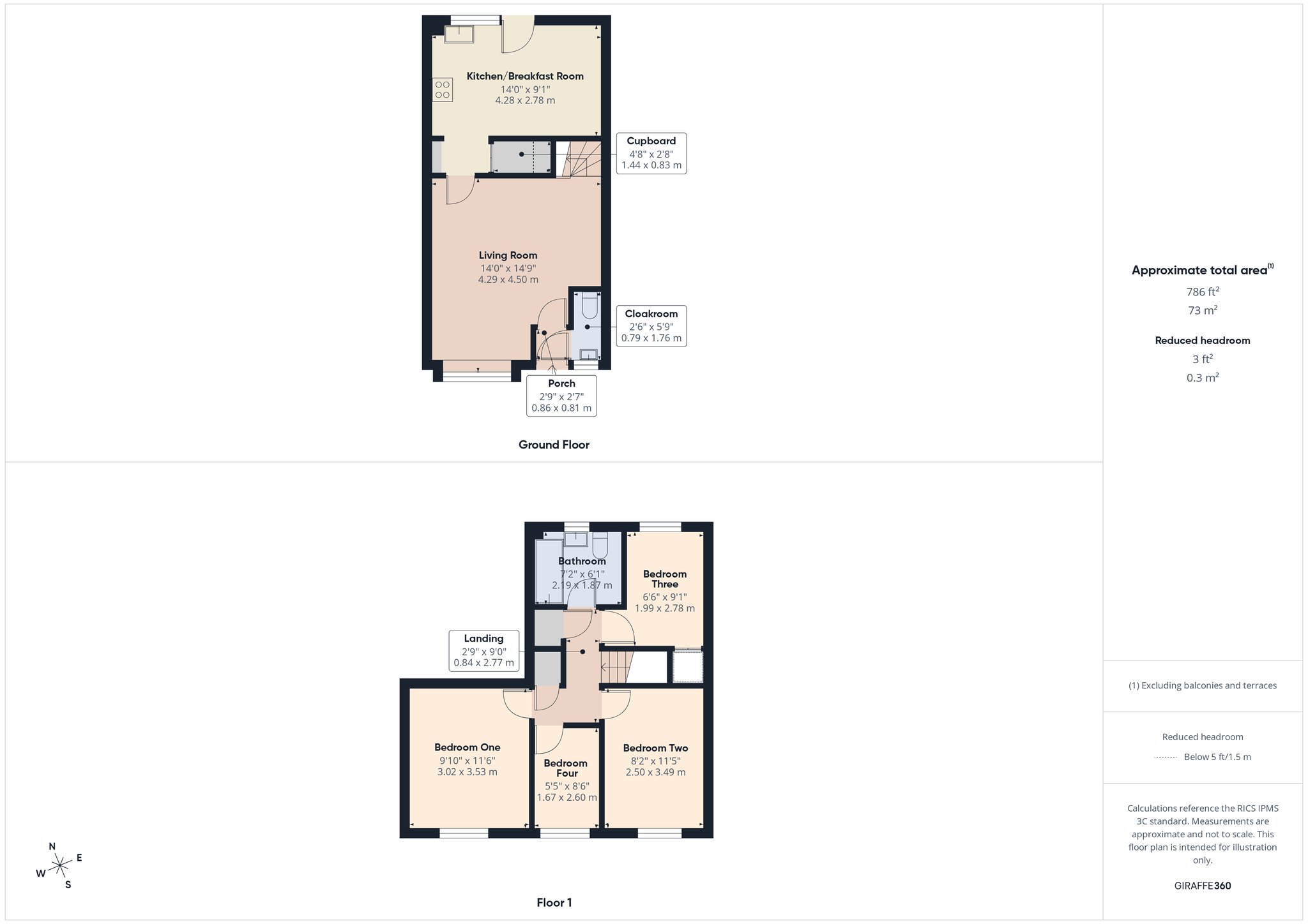 Ascending to the first floor, the landing presents doors to all rooms and two cupboards offering useful storage. Bedroom one is well-proportioned double room with a front aspect window and is located above the shared driveway. Bedroom two, a further double, also offers a front elevation window and houses the loft hatch which allows access into the attic space. Bedroom three is to the rear elevation with a window overlooking the garden. This room benefits from a built-in cupboard above the stairs. Bedroom four provides a window to the front elevation and would make a lovely nursery or home office, depending upon your requirements. The bathroom is principally tiled and comprises a panel enclosed bath with a shower over, wash hand basin and a WC. There is a rear aspect, obscured window.