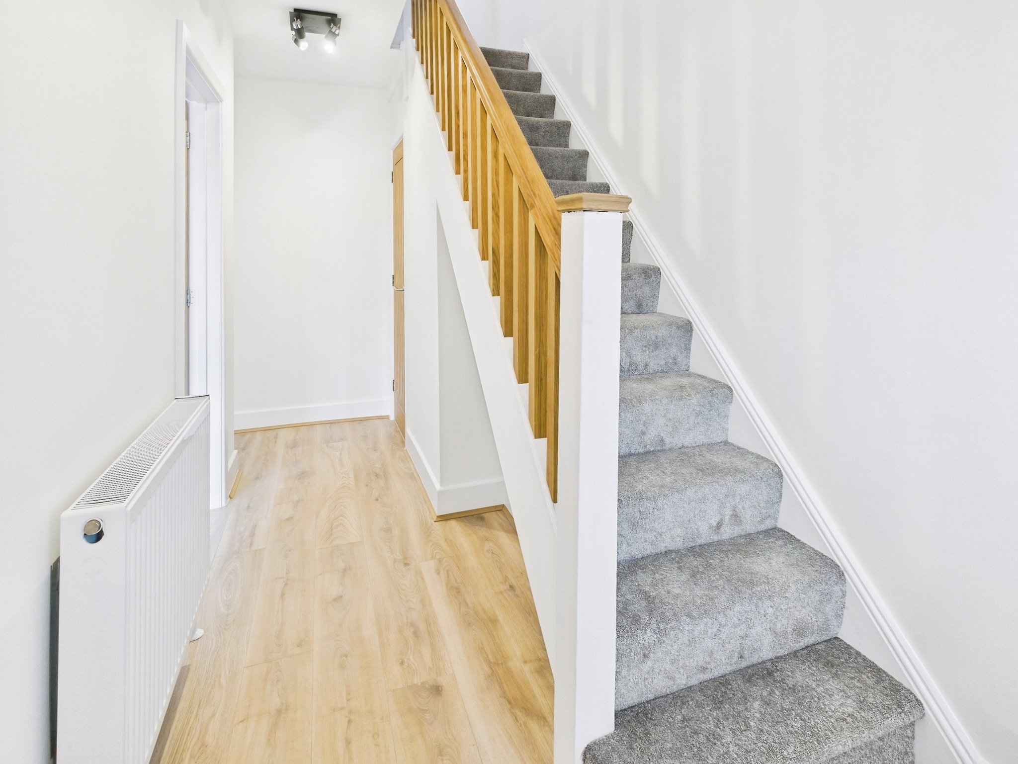 Ascending to the first floor, the landing offers natural light courtesy of a side elevation window, and a loft hatch into the attic space. The bedrooms are accessed through oak veneered doors. Bedroom one, is a well-proportioned double room boasting a front elevation bay window. Bedroom two, is a further double room with a rear aspect window offering views over the garden. Bedroom three benefits from a rear elevation window. The contemporary shower room has an obscured window to the front and comprises a shower cubicle with rainfall effect shower, a vanity wash hand basin and a WC.