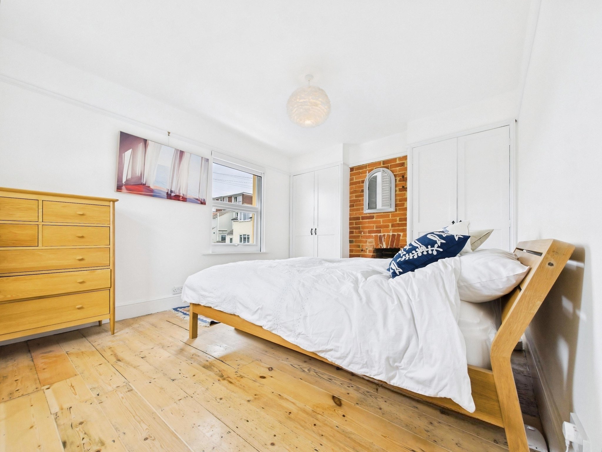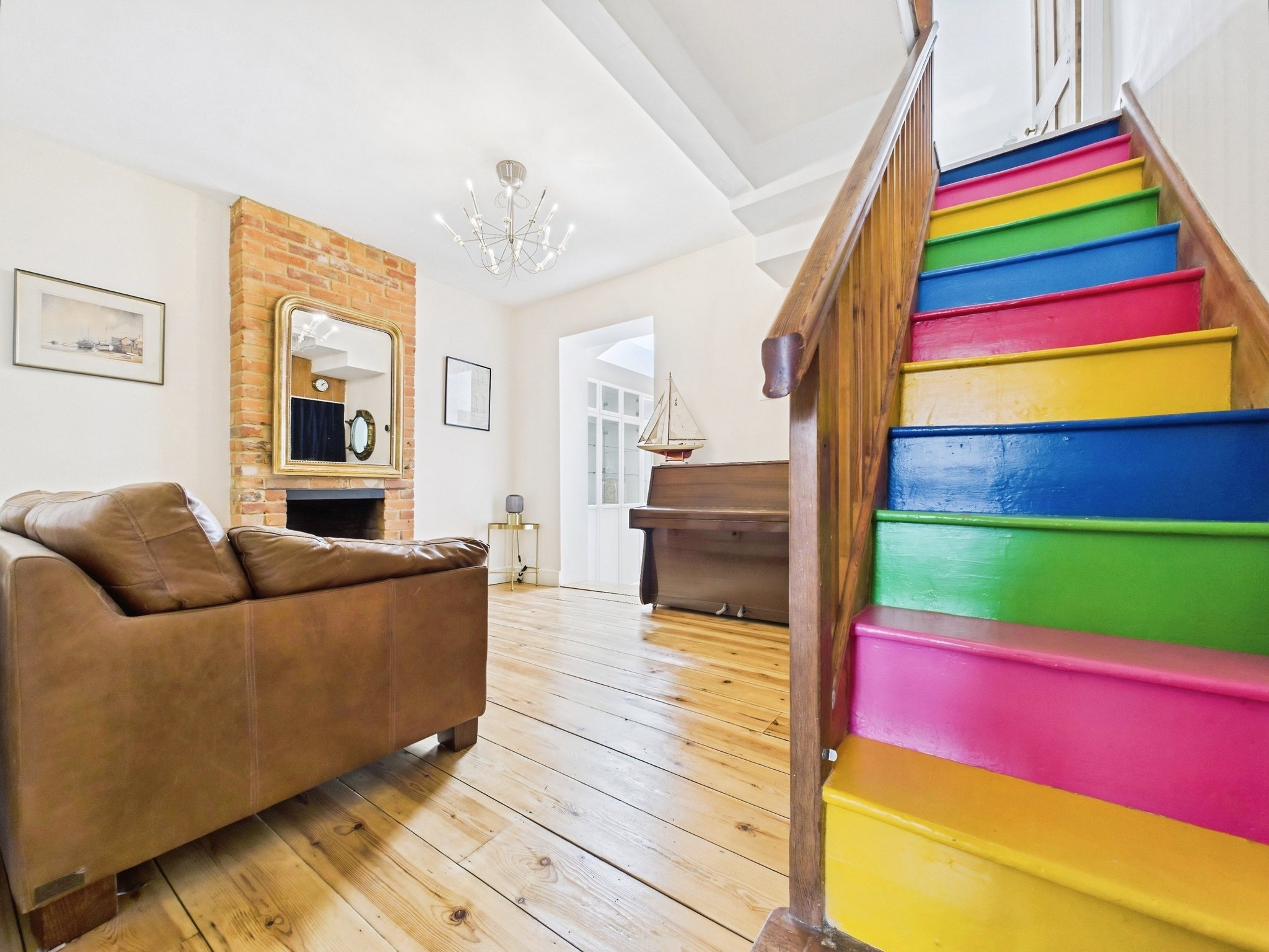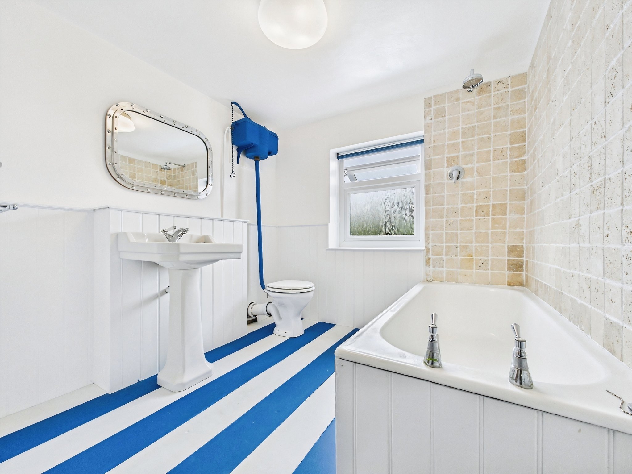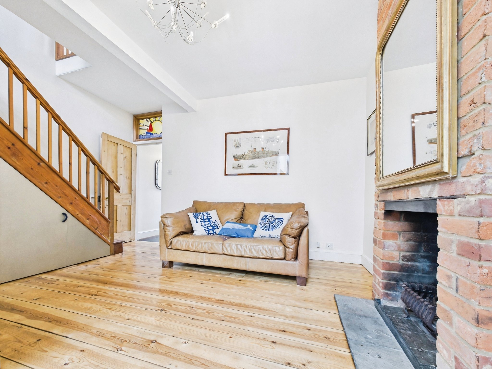 Ascending to the first floor, the landing offers doors to all rooms, a side elevation window and a loft hatch into the attic space. Bedroom one is a well-proportioned double room with windows to the front and side elevations, from which you are treated to views towards Southampton Water. There is a brick fireplace, with fitted wardrobes to each side offering useful storage. Bedroom two boasts a pretty feature fireplace. There is a rear elevation window and a porthole window within the wall, from which you are treated to views of the water. The bathroom offers an obscured rear elevation window and comprises a panel enclosed bath with a shower over, a wash hand basin and a WC.