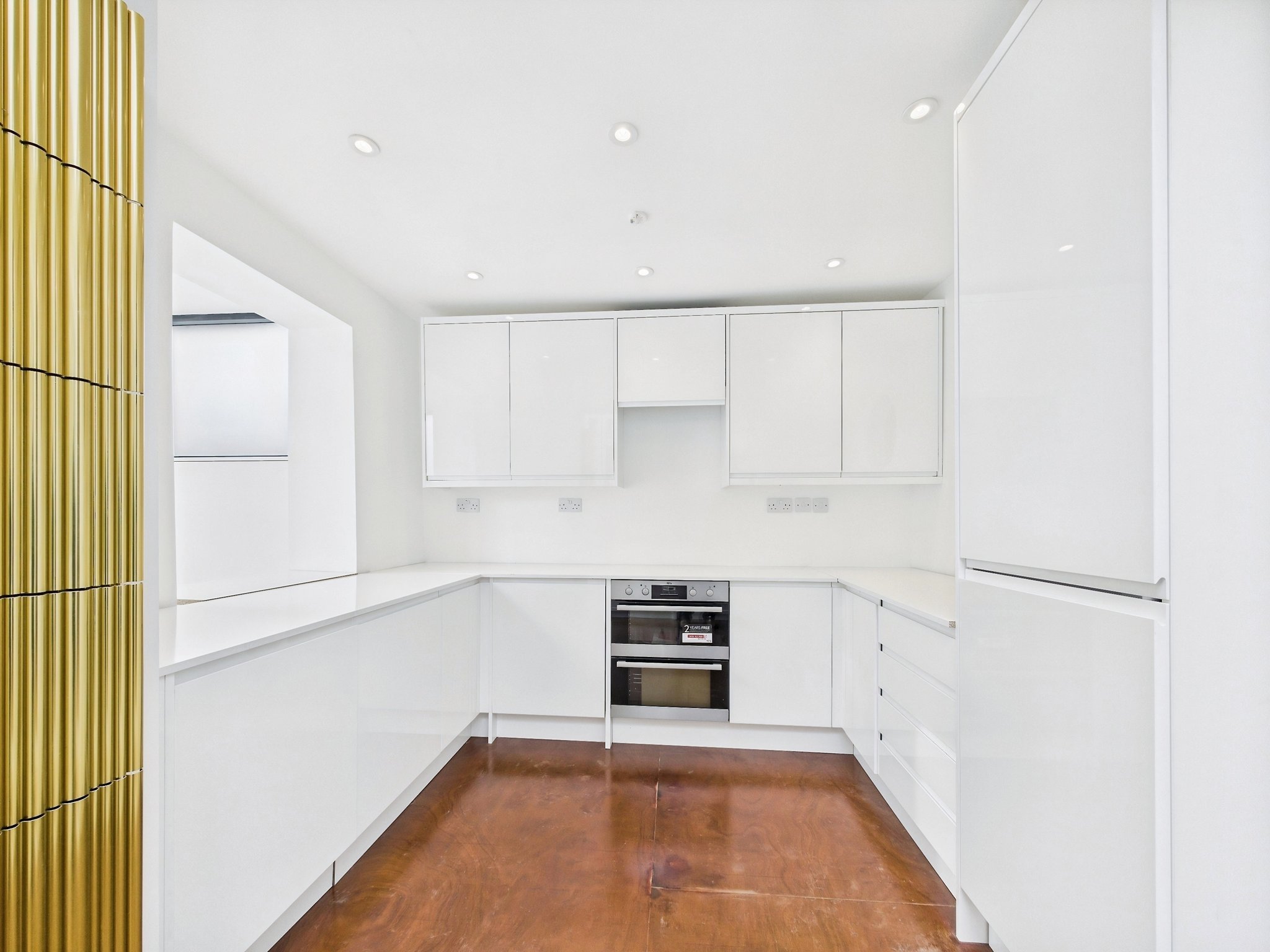 The newly fitted kitchen (currently being installed) is modern in finish with a range of gloss white wall and base units.