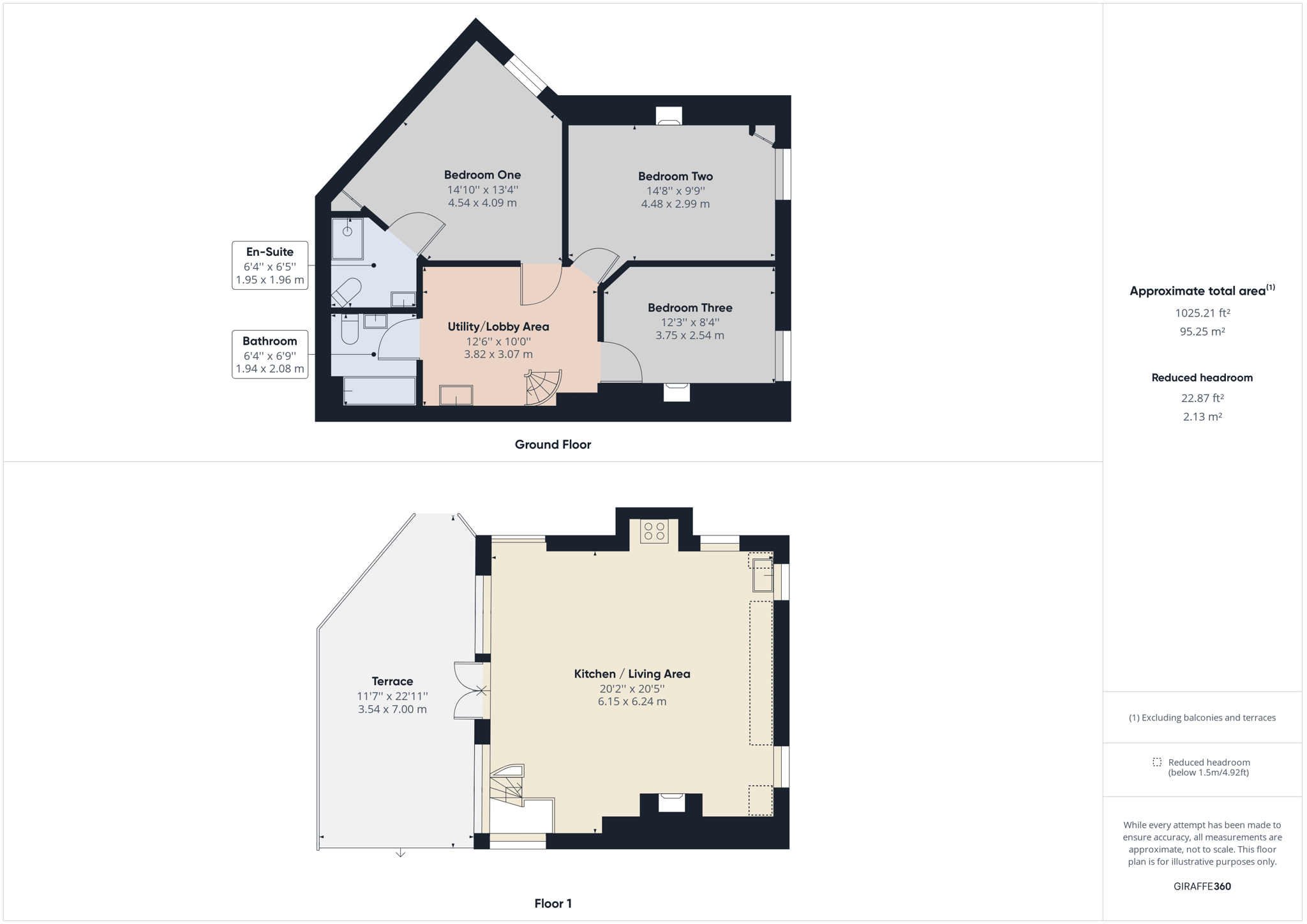 Living Area: Working fire within the chimney breast. Three radiators and ample power points. French doors opening onto the terrace. Spiral staircase leading to the downstairs accommodation.