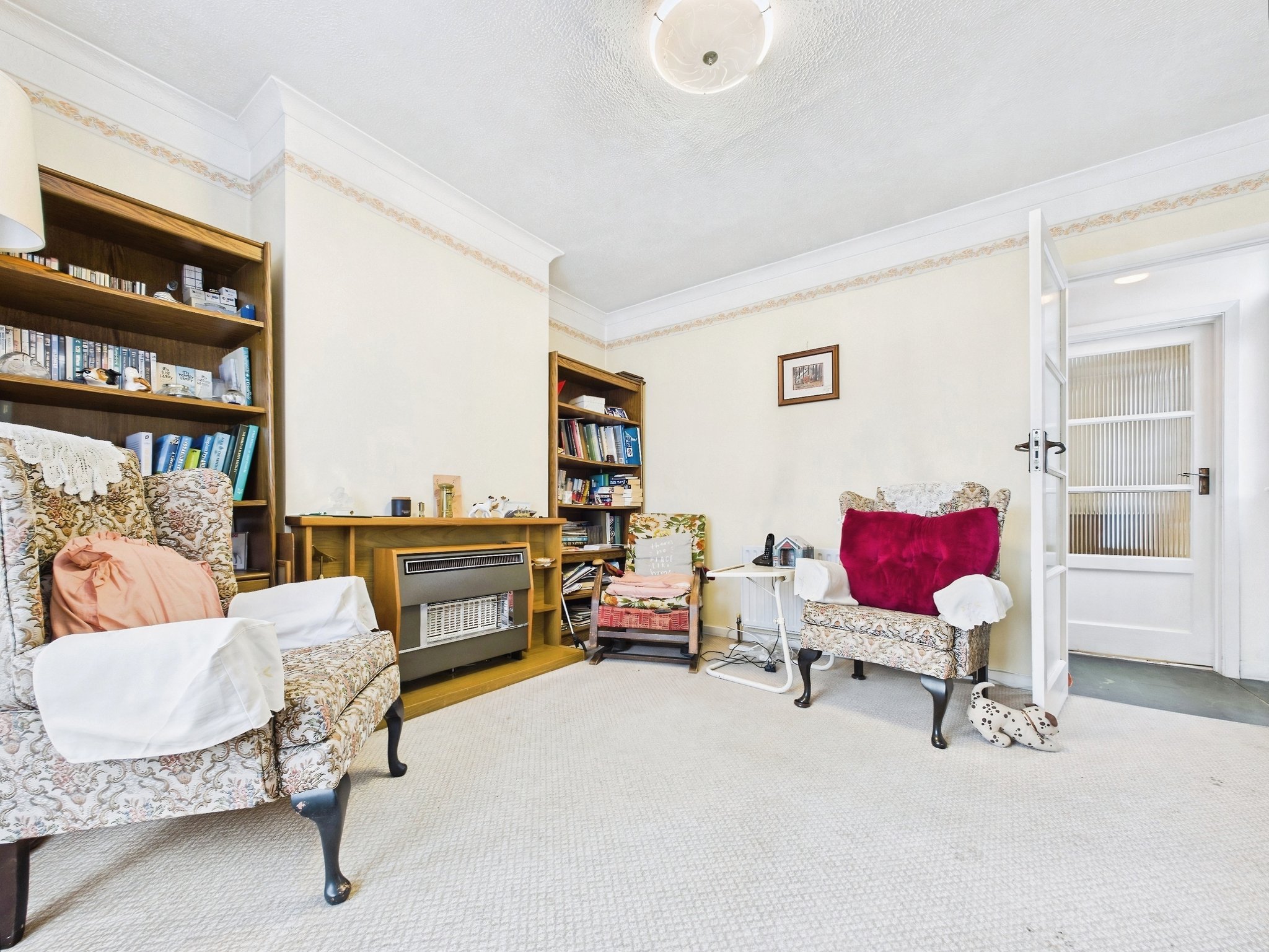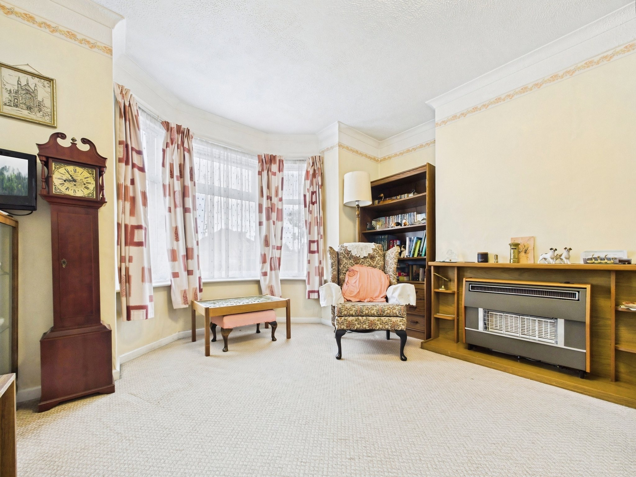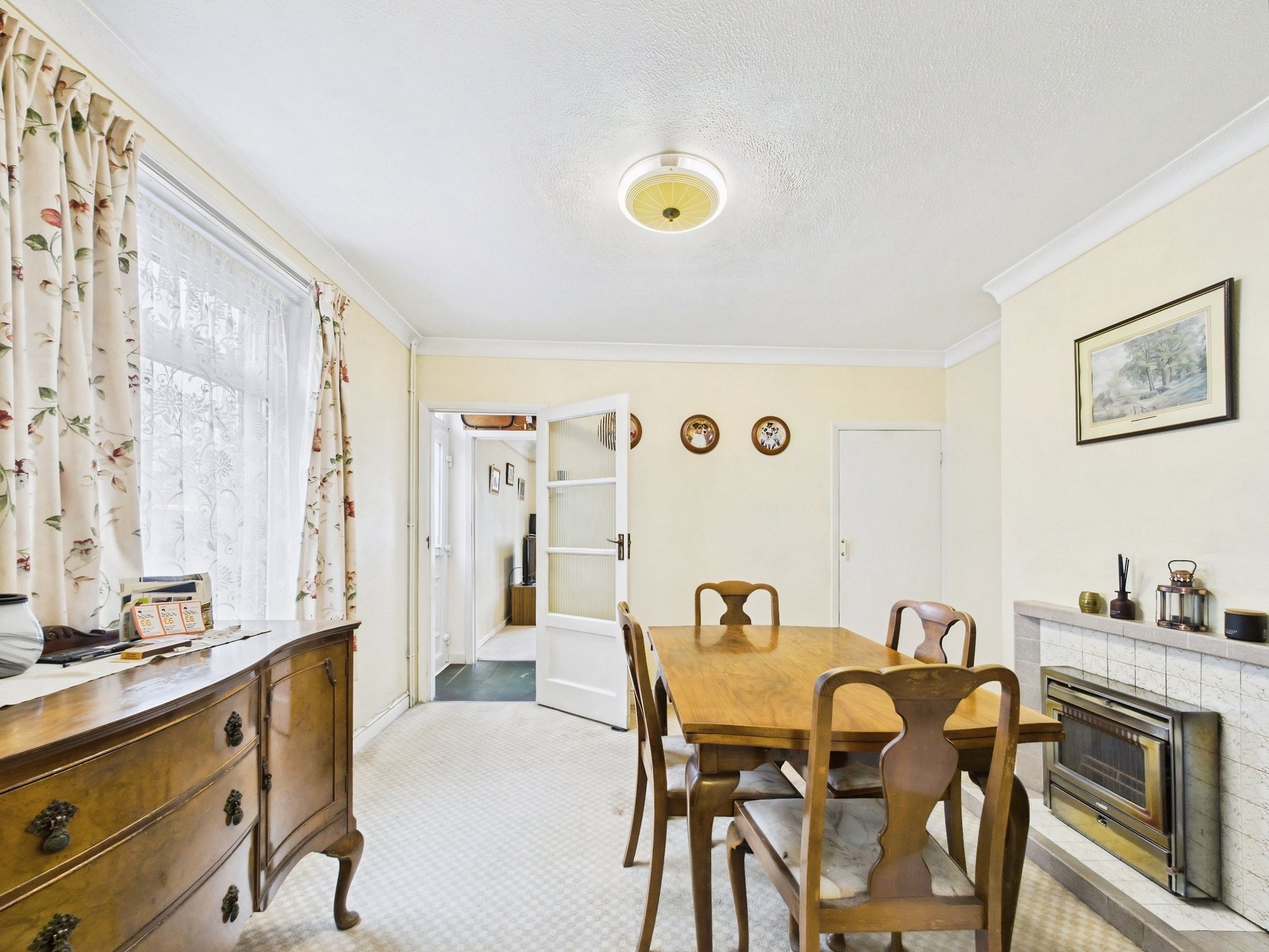 Ascending to the first floor, the landing presents doors to bedrooms one and two and a loft hatch allowing access into the attic space. Bedroom one is a well-proportioned double room with a front elevation window and fitted cupboard. Bedroom two is another good-sized double room with a side elevation window and a door into bedroom three. Bedroom three offers a window to the side aspect and a fitted cupboard.
