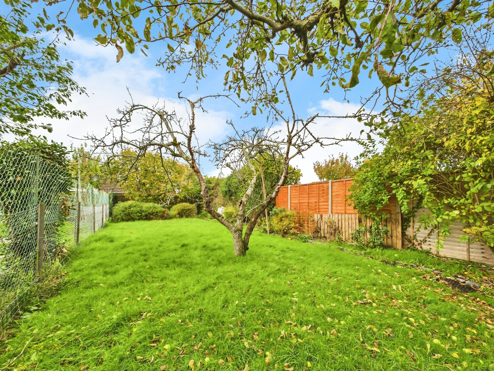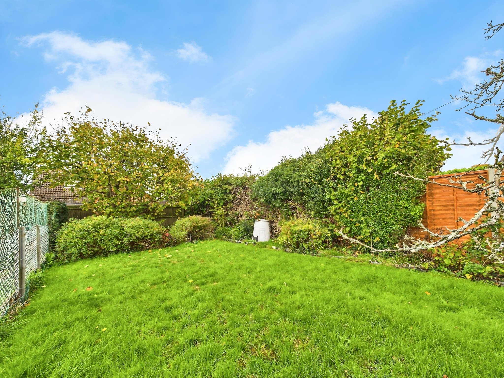 The property is approached by a driveway providing off road parking. The front garden is laid to lawn. Double gates allow access into the rear garden and the detached garage. The rear garden is enclosed by a mixture of timber and chain link fencing and is largely laid to lawn with borders containing a range of established plants and shrubs. A timber shed provides useful storage.
