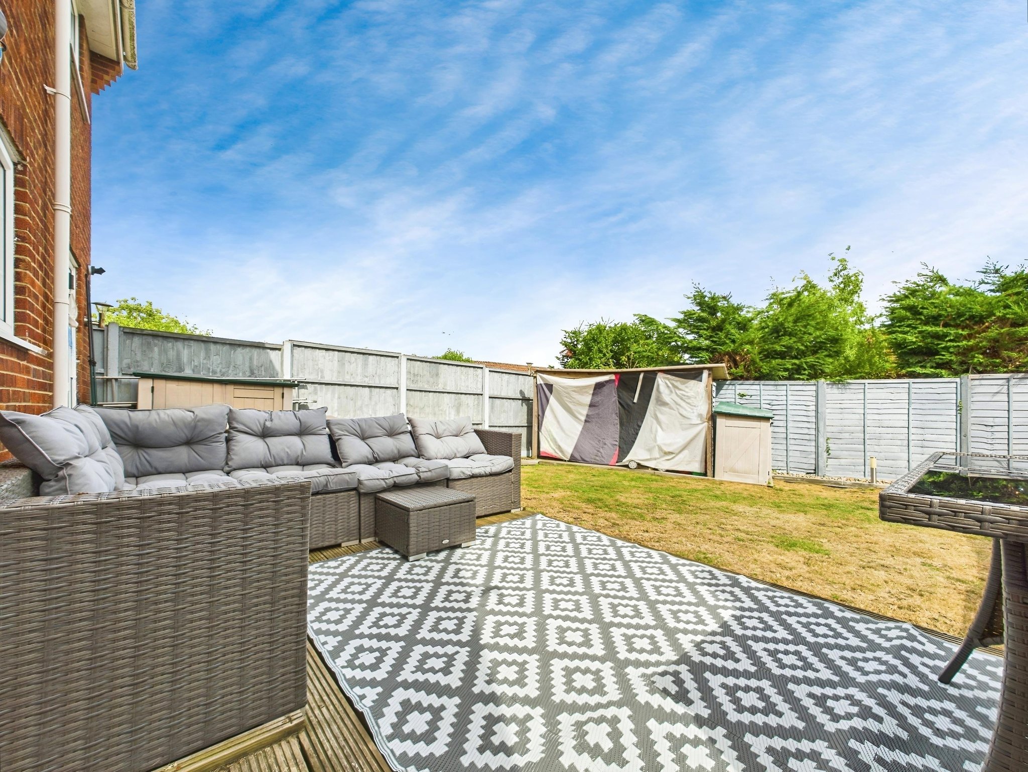 The enclosed rear garden is bound by timber fencing and is largely laid to lawn. There is an area of decking adjacent to the property which offers the perfect spot for outdoor entertaining and al fresco dining.