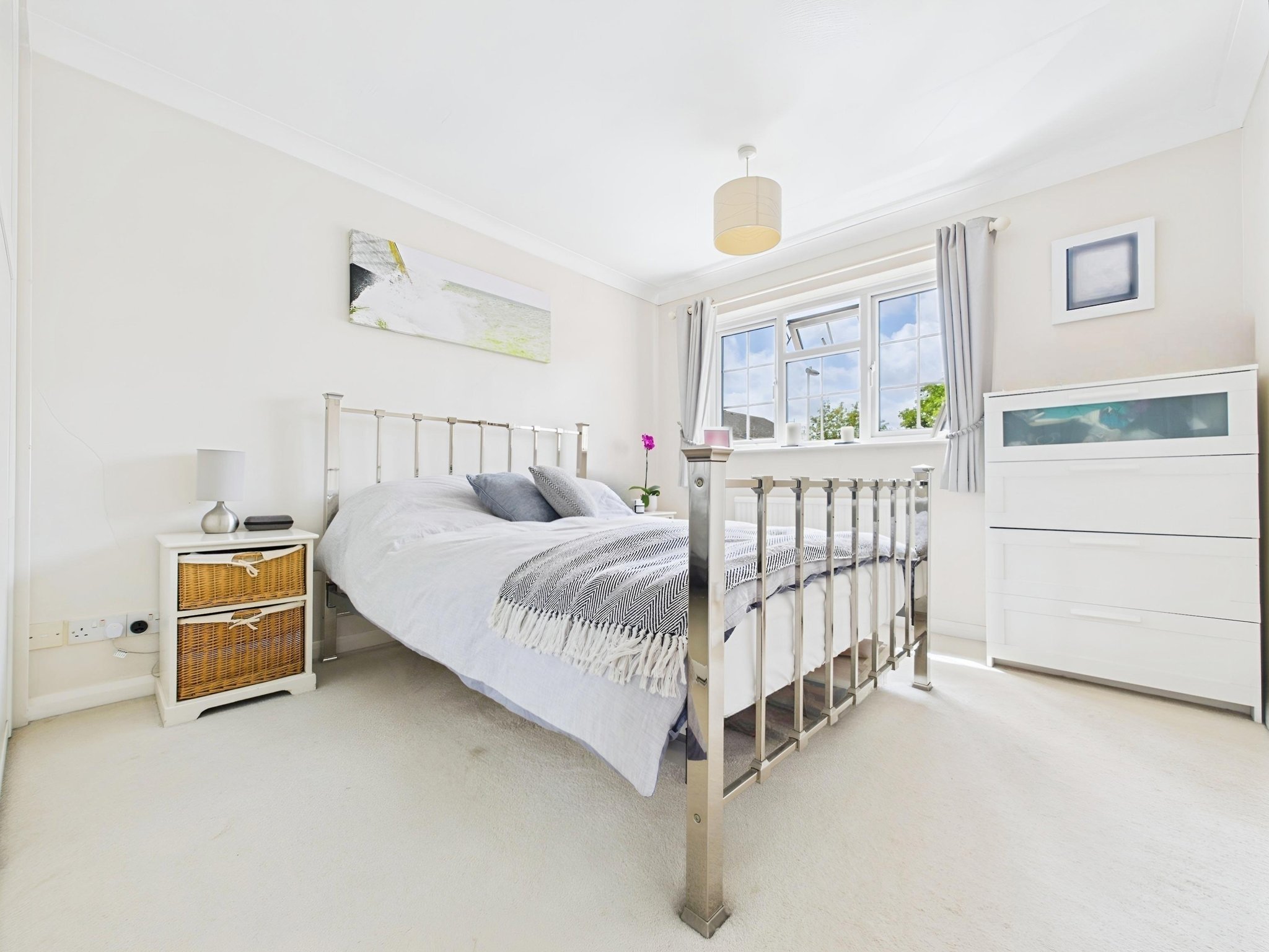 Generously sized bedroom one to the front elevation, is decorated in muted tones creating a calm and relaxing atmosphere. There is a door opening into a linen cupboard and the added benefit of built-in storage, by way of a mirror fronted wardrobe.