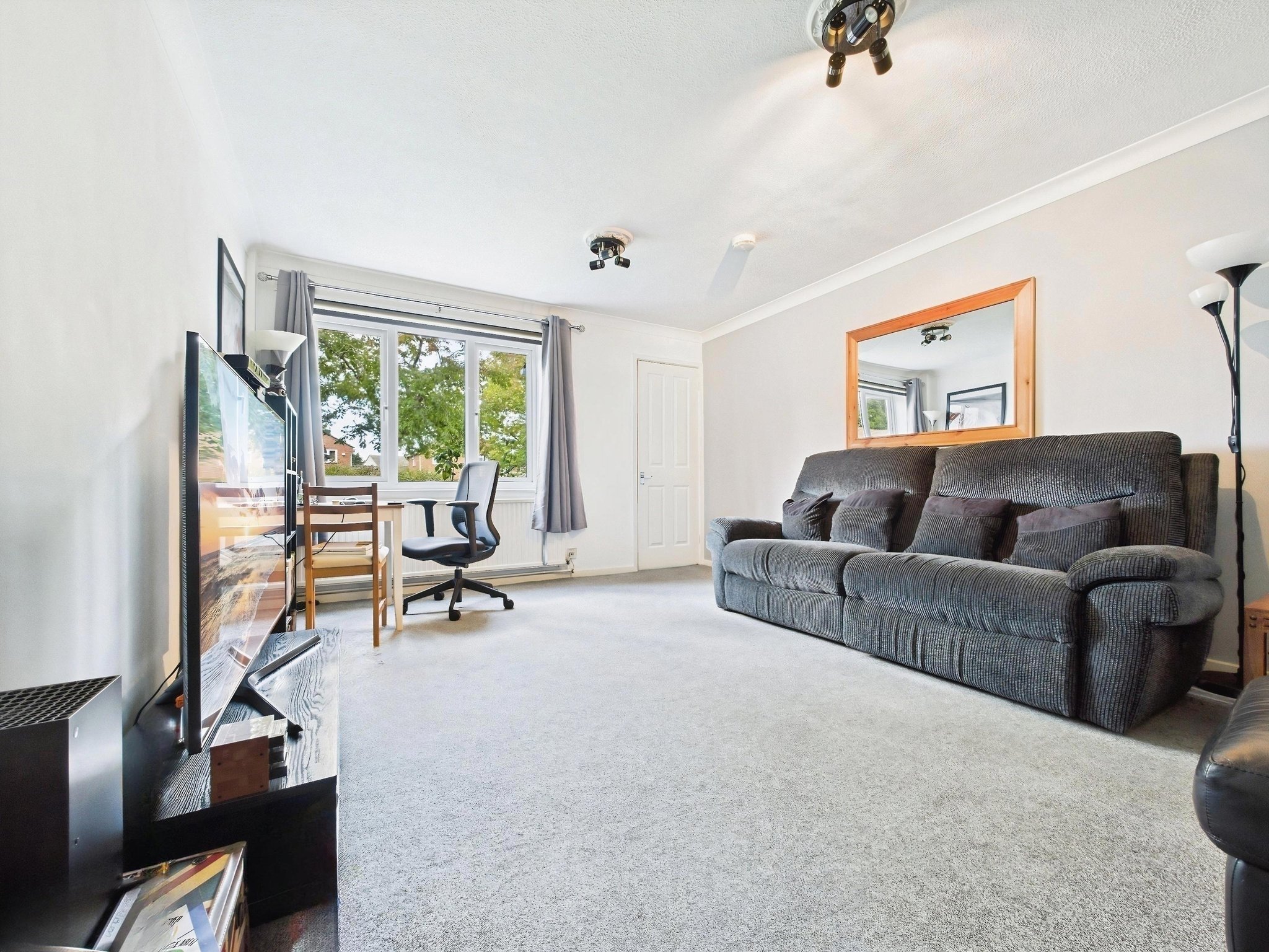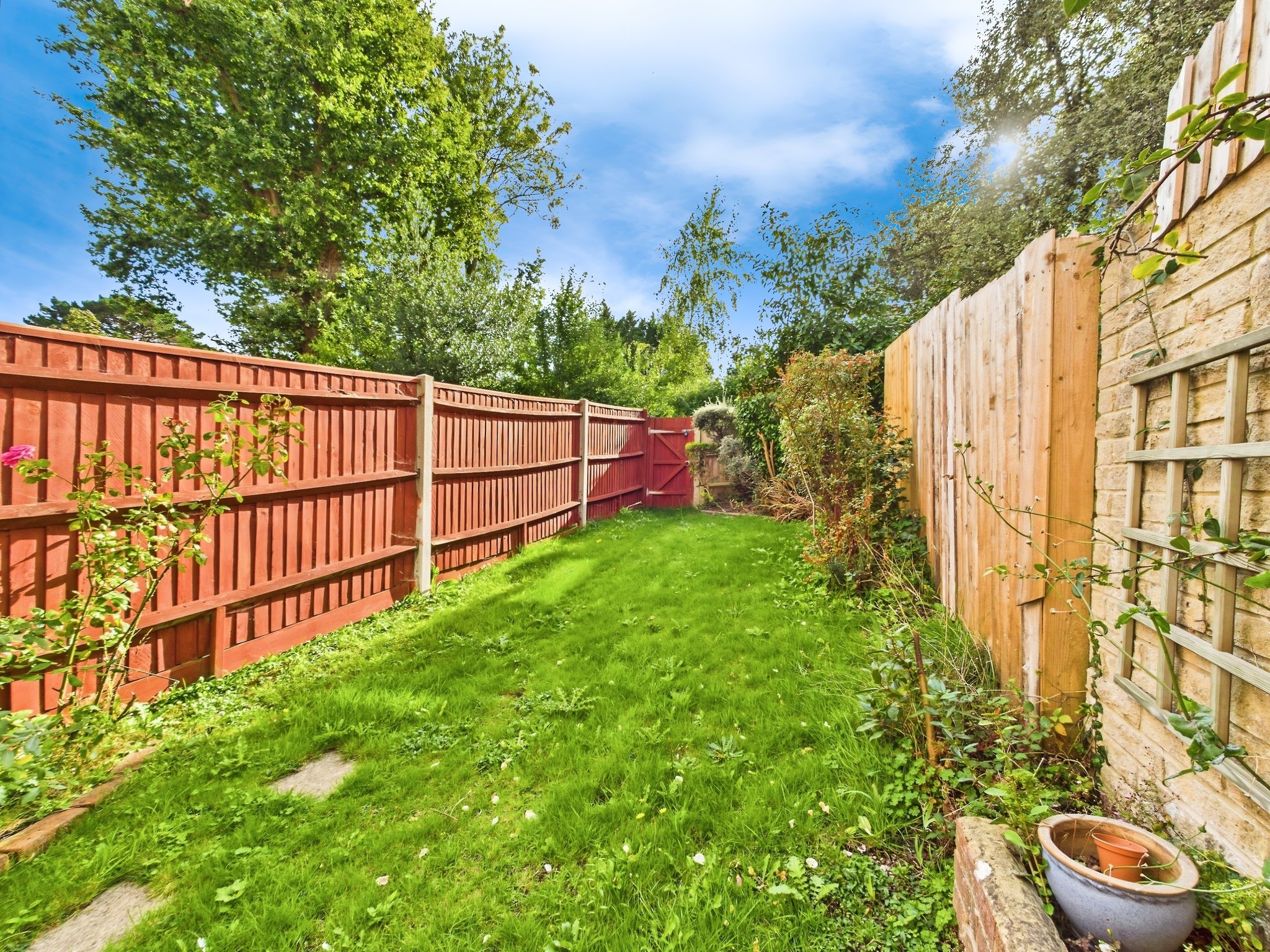 The rear garden is enclosed by timber fencing with a pedestrian gate. Predominantly laid to lawn with borders containing several shrubs, the garden also benefits from a patio area, which presents a lovely spot for outdoor entertaining and al fresco dining. The property offers a garage en-bloc.