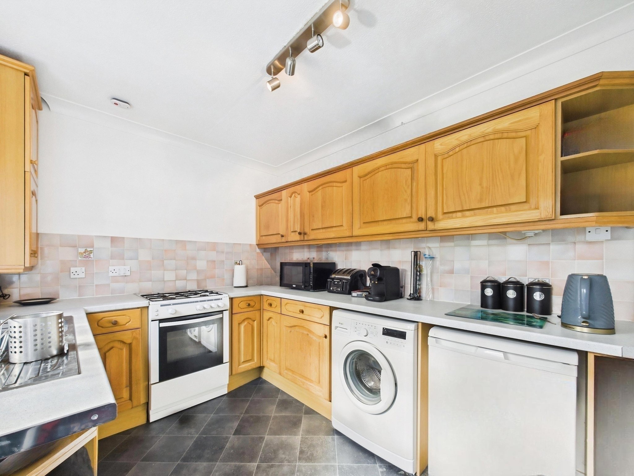 The kitchen comprises a range of matching wall and floor mounted units with a worksurface over. There is space for a freestanding oven, space and plumbing for a washing machine and additional appliance space. A rear elevation window and door provide views over, and open onto the rear garden.