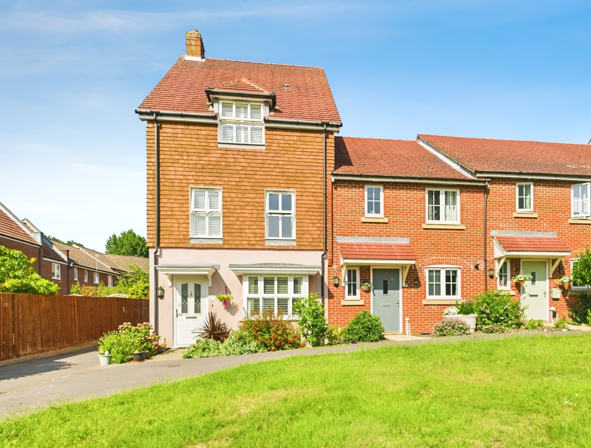 Stylish and well presented three bedroom end of terrace townhouse with a garage and garden, nestled in a popular residential development. The dwelling is ideally situated for local amenities, transport links, schools and green spaces. Viewing highly recommended.