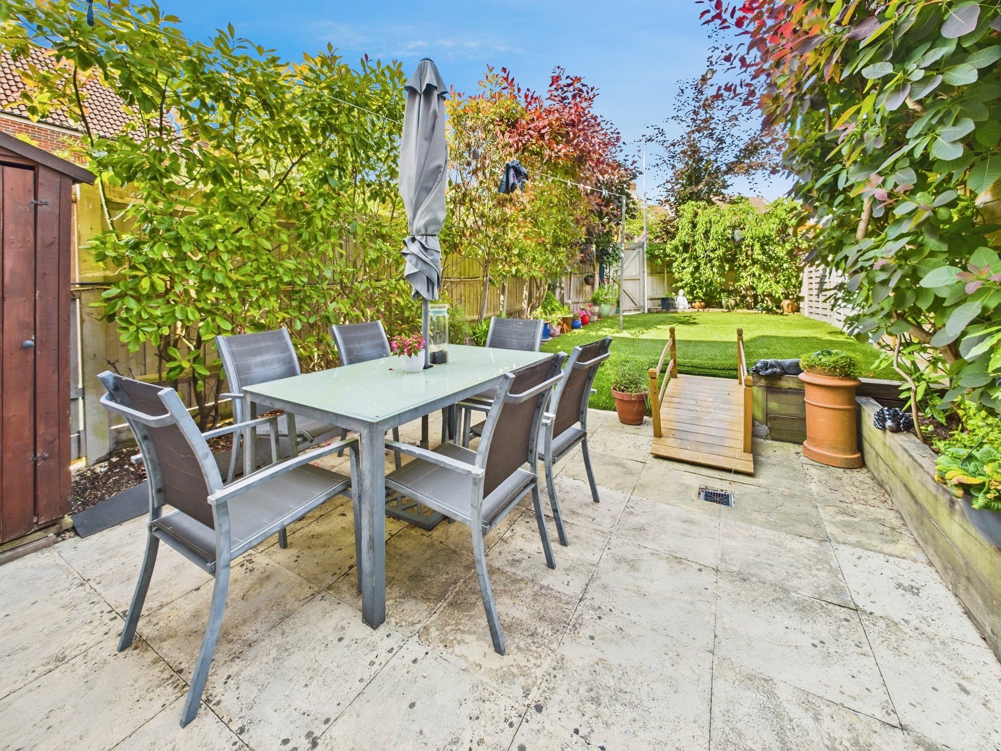 The rear garden is enclosed by timber fencing with a pedestrian gate. It is predominantly laid to artificial lawn with borders containing a mixture of trees and shrubs. A paved patio, adject to the property, offers a lovely spot for outdoor entertaining and al fresco dining.