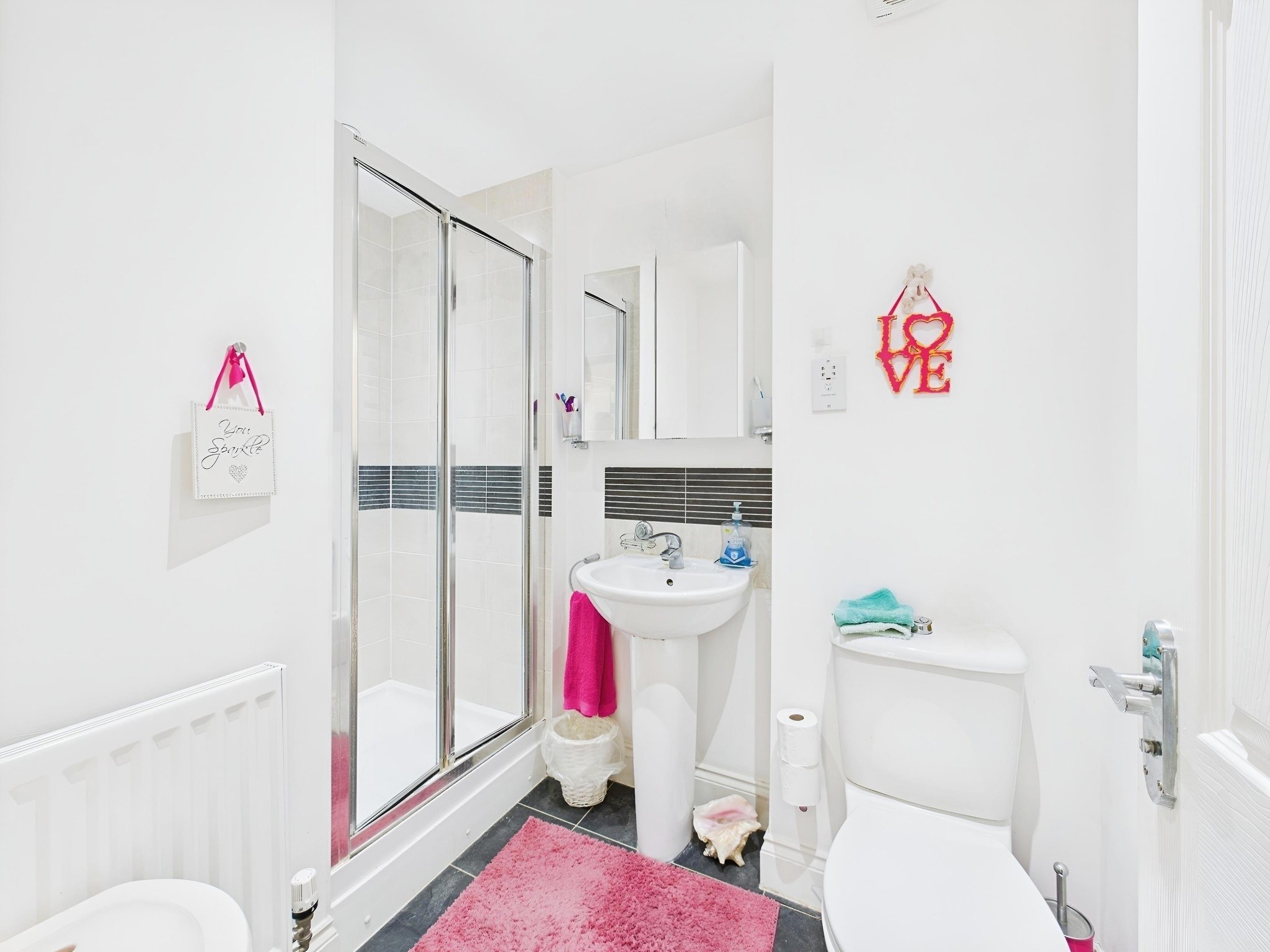 Rising to the second floor, the landing offers doors to all rooms and a linen cupboard providing useful storage. Bedroom two, another well-proportioned double room, presents a front elevation window. Bedroom three, another double, offers a window to the rear elevation with views over the garden. The bathroom is tiled to principal areas and comprises a shower cubicle, wash hand basin and a WC.