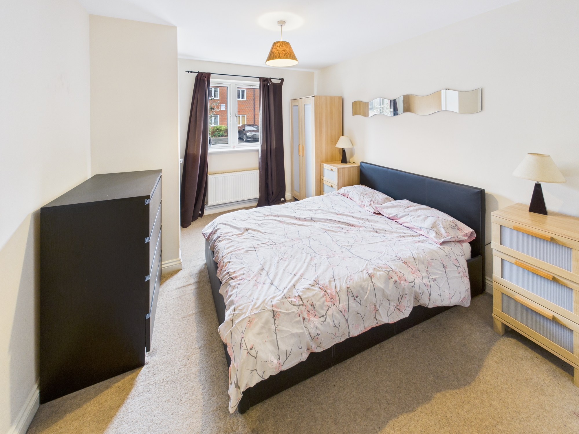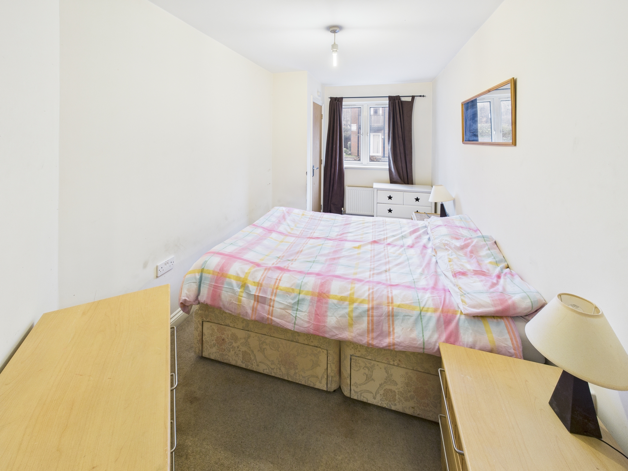 Bedroom one is a well-proportioned double room with a window looking over the communal grounds and a built in cupboard providing useful storage. This bedroom boasts the added convenience on an en-suite comprising a shower cubicle, wash hand basin and a WC.