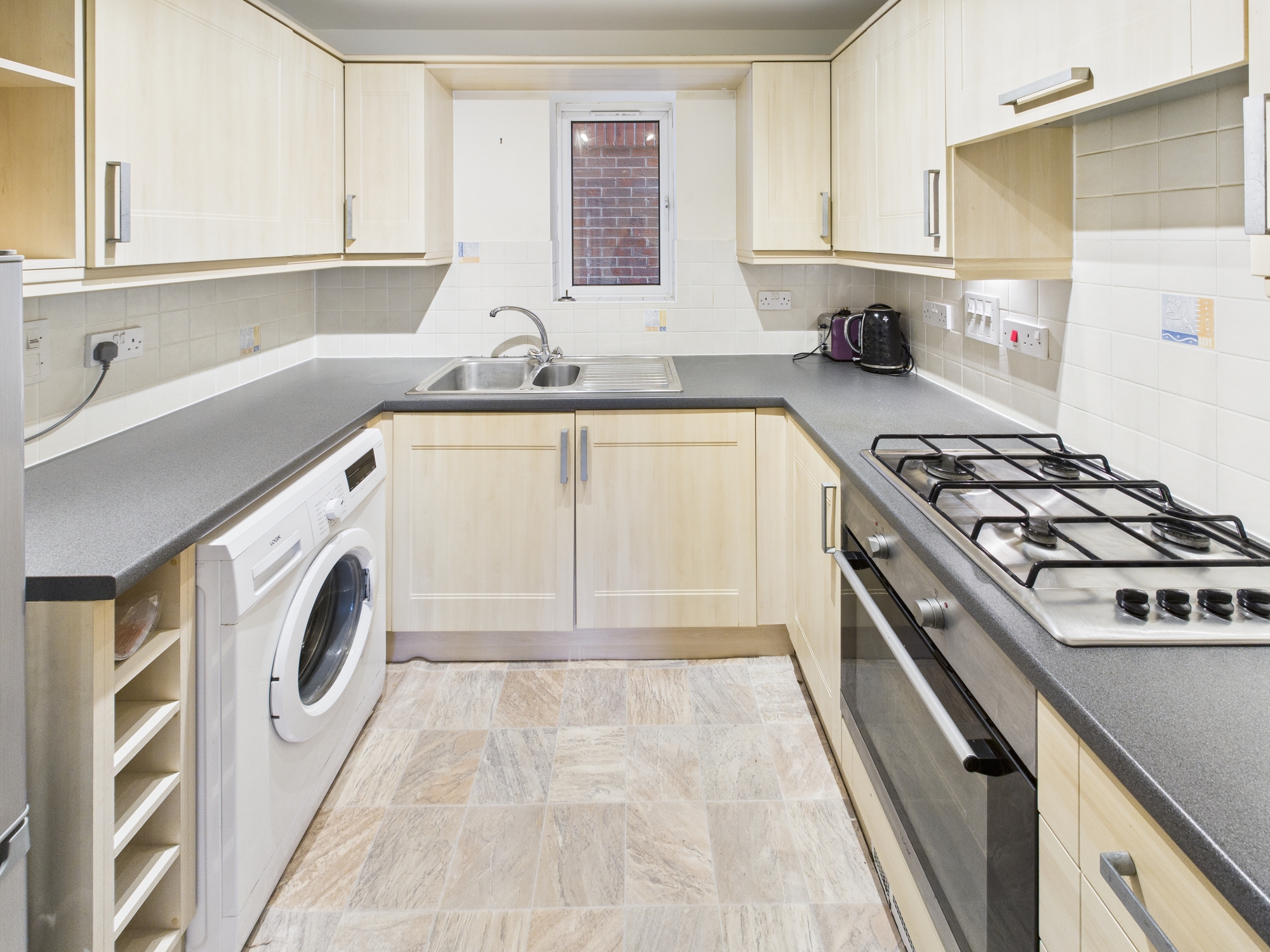 The living/dining room is a well-proportioned, light filled space, perfect for both gathering or simply relaxing at the end of a busy day. There is a window to the side aspect and French doors in the living area, opening out to the communal grounds.