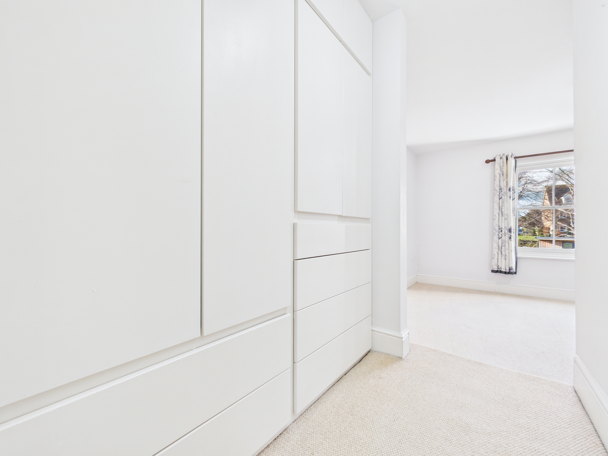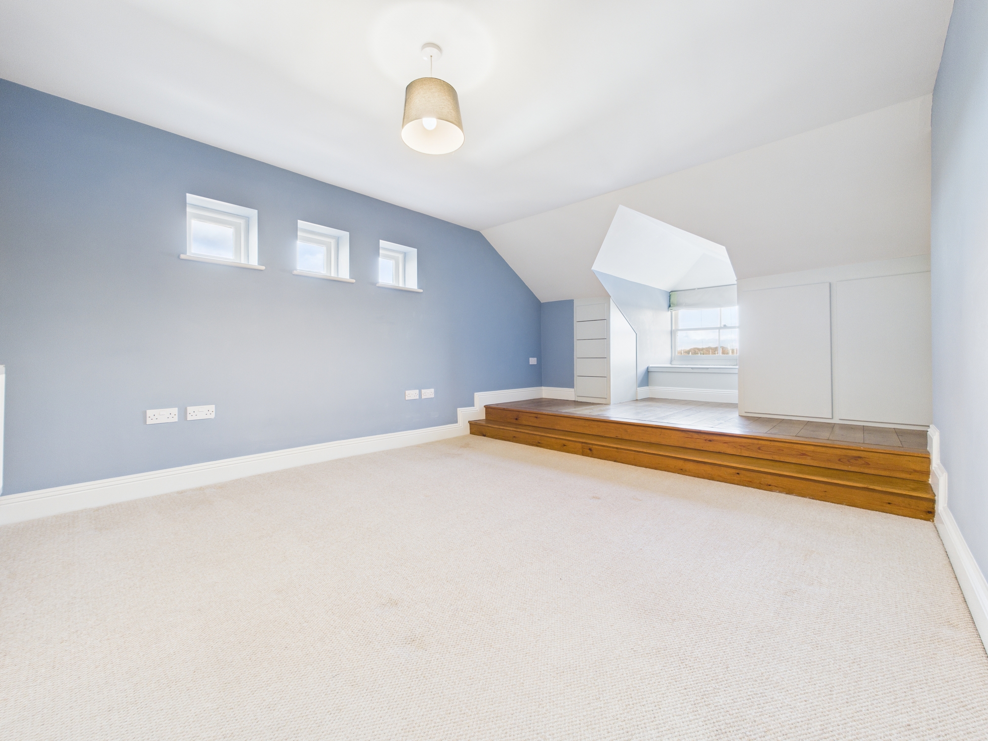 Rising to the second floor, a small landing leads into bedroom one, a sanctuary for relaxation. There are three high-level windows to the side elevation and two steps to a raised seating and storage area within the eaves. A pretty window seat lies beneath a front elevation window from which you are treated to picturesque views of the River Hamble beyond. This bedroom boasts the added convenience of a modern four-piece ensuite including a triangular shaped feature window. There is a shower cubicle, panel enclosed bath, wash hand basin, WC and a heated towel radiator.