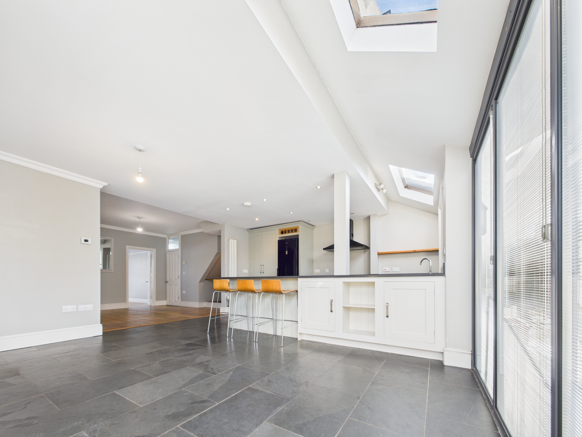 The property welcomes you into the hallway with a door in to the living accommodation and stairs rising to the first floor. Character features include beautiful high ceilings and a picture rail, typical of its era. Exposed floorboards flow into the lounge and family area. The lounge exudes grandeur and is the ideal space to relax at the end of a busy day. This room boasts a beautiful front elevation bay with sash windows offering views over the front garden. An open fire enhances the cosy atmosphere. Cleverly crafted shelving and cabinetry within the chimney breast recesses offers useful storage. The heart of the home has to be the delightful open plan kitchen/dining and family area, a fabulous light filled space, perfect for entertaining. There are windows to the rear and side aspects, bifold doors to the rear and two skylight windows allowing additional natural light into the room.
