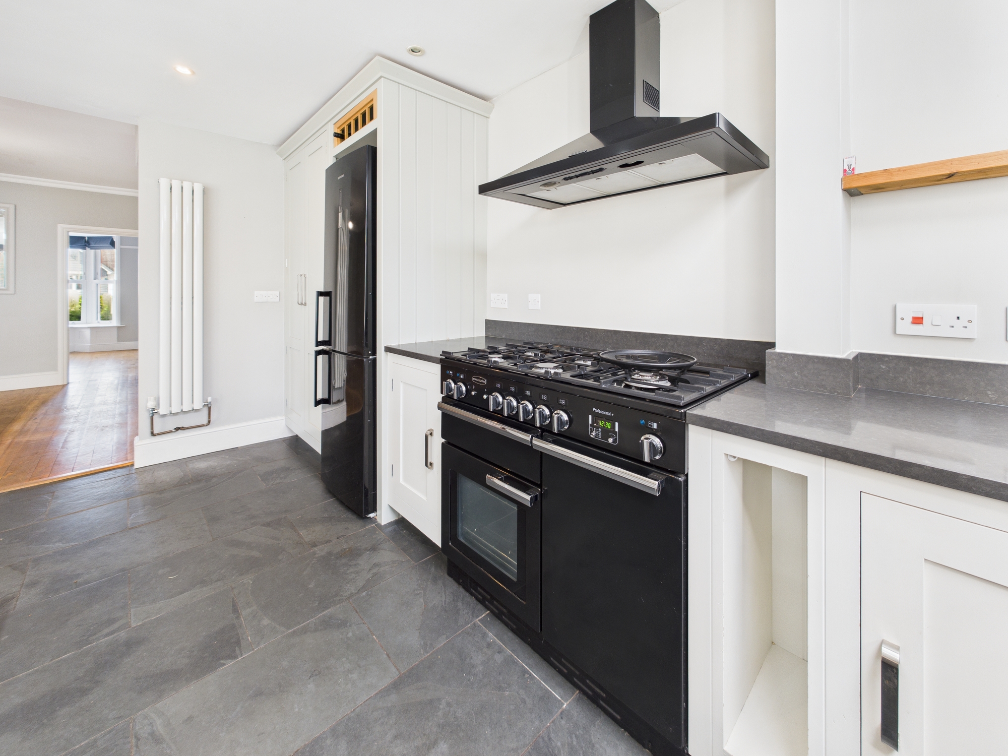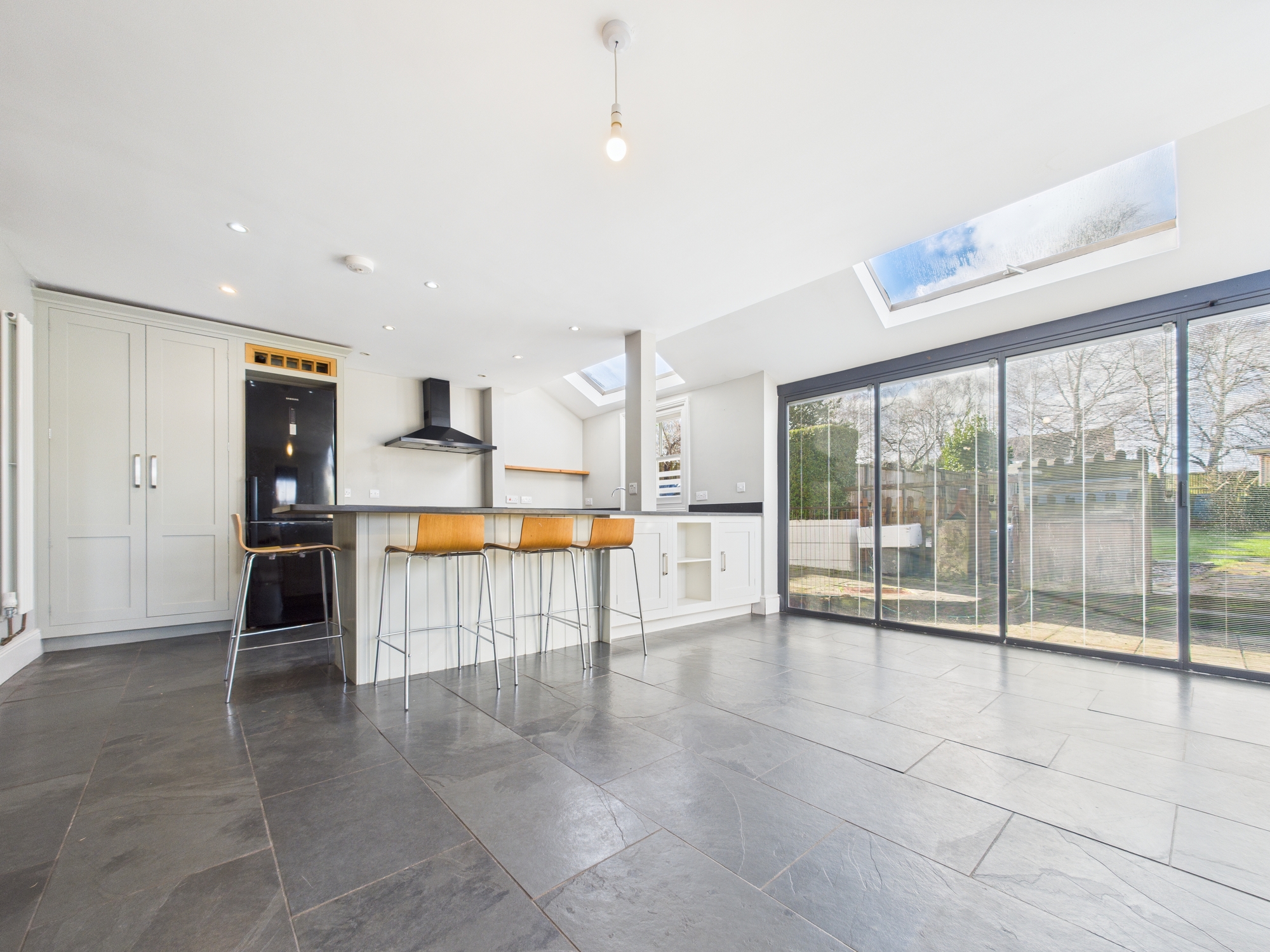The high specification, Harvey Jones, handcrafted, shaker style kitchen comprises a comprehensive range of units, including a larder cupboard, with a Corian worksurface and breakfast bar. There is an inset sink with engraved drainer, space for a range cooker with an extractor hood above, space for a fridge/freezer and space for a dishwasher. The kitchen and dining areas benefit from tiled flooring with underfloor heating. The utility room houses the gas-fired boiler and comprises wall and base units with a worksurface, sink and drainer over. There is appliance space for a washing machine and tumble dryer and a door leading to the outside space. The ground floor boasts the added convenience of a cloakroom with a wash hand basin and WC.