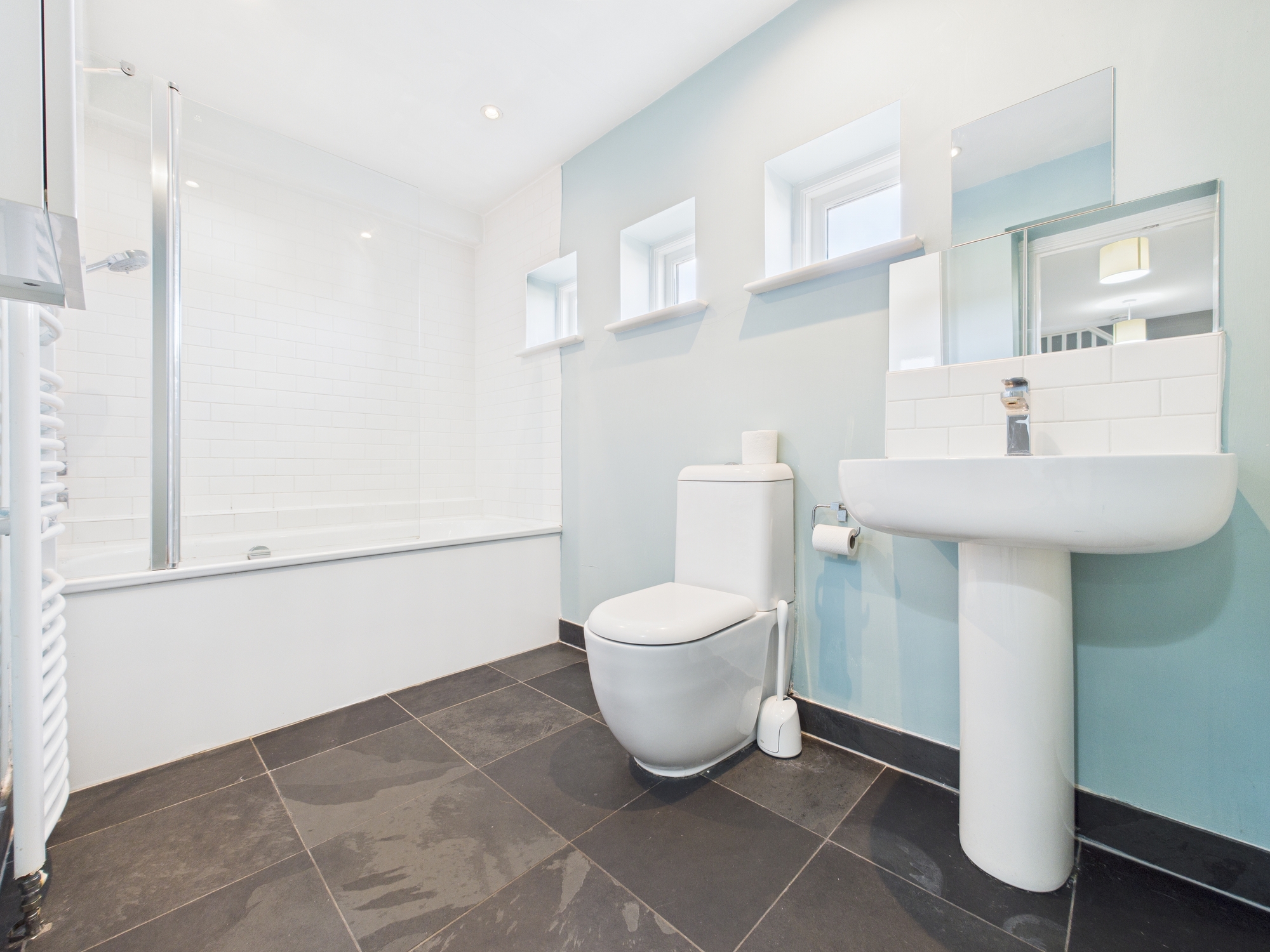 Ascending to the first floor, the landing presents doors to principal rooms. Bedroom two, formerly the master, is a spacious double with a front elevation window offering glimpses of the river, and recess within the chimney breast. Bedroom three, a further well-proportioned double room, presents a rear aspect window with views over the garden and a loft hatch. A dressing area offers a series of fitted wardrobes and cupboards. Bedroom four is a beautiful versatile space with a rear aspect window and a feature fireplace. This room could be used for a number of purposes depending upon your requirements. The family bathroom is principally tiled with three high-level windows and a heated towel radiator. The suite comprises a panel enclosed bath with a shower over, wash hand basin and a WC.