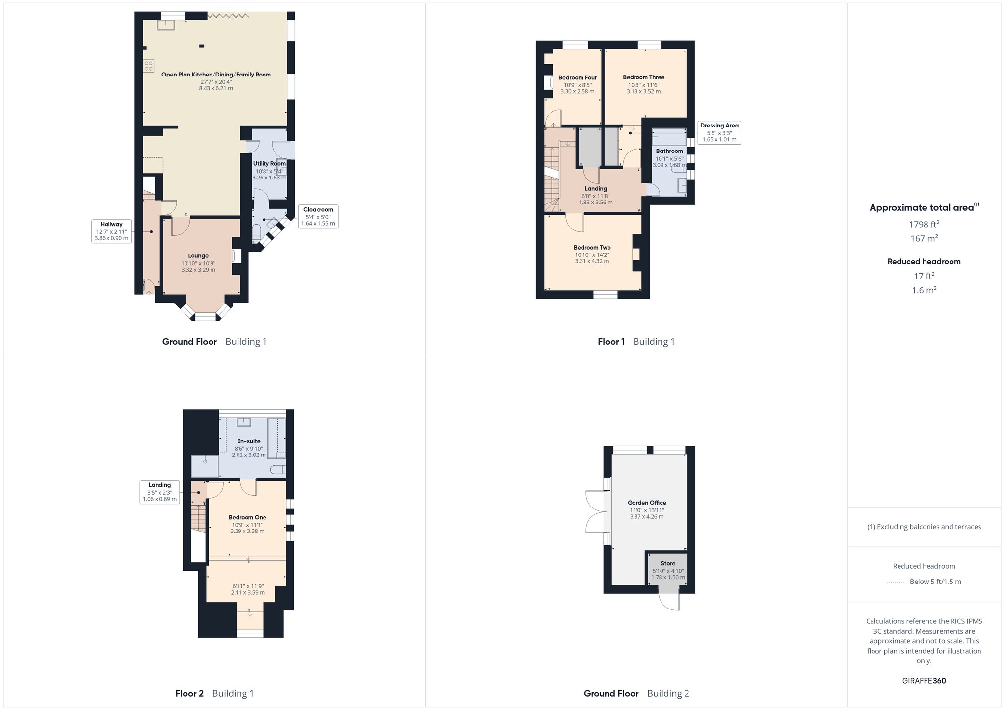 The enclosed rear garden is largely laid to lawn with an area of raised decking providing a lovely spot for outdoor entertaining and al fresco dining. At the foot of the garden is a timber shed, offering useful storage, and a fantastic garden office. The garden office benefits from power, lighting and internet, and could be used for a number of purposes. There is a store to one side.