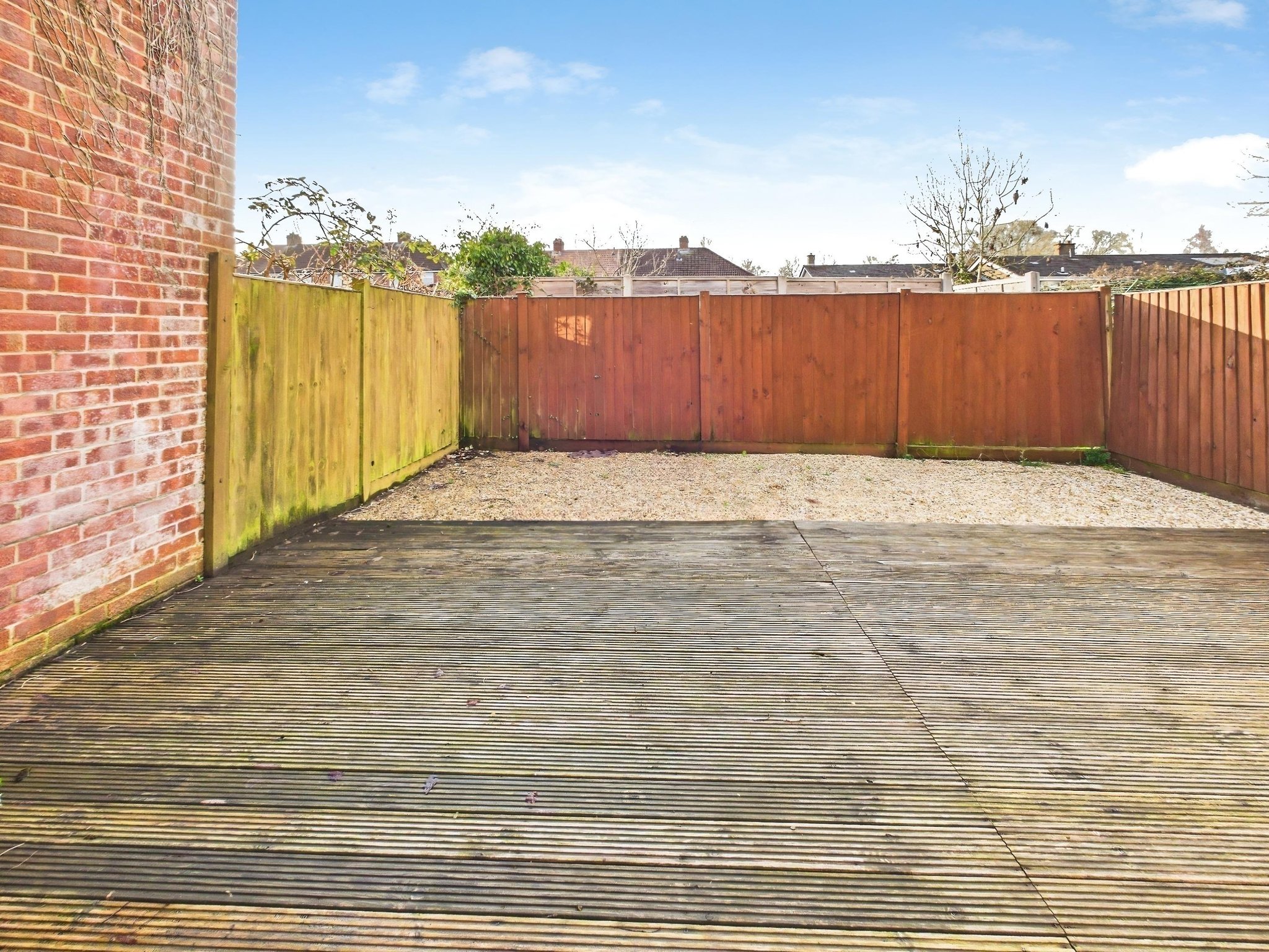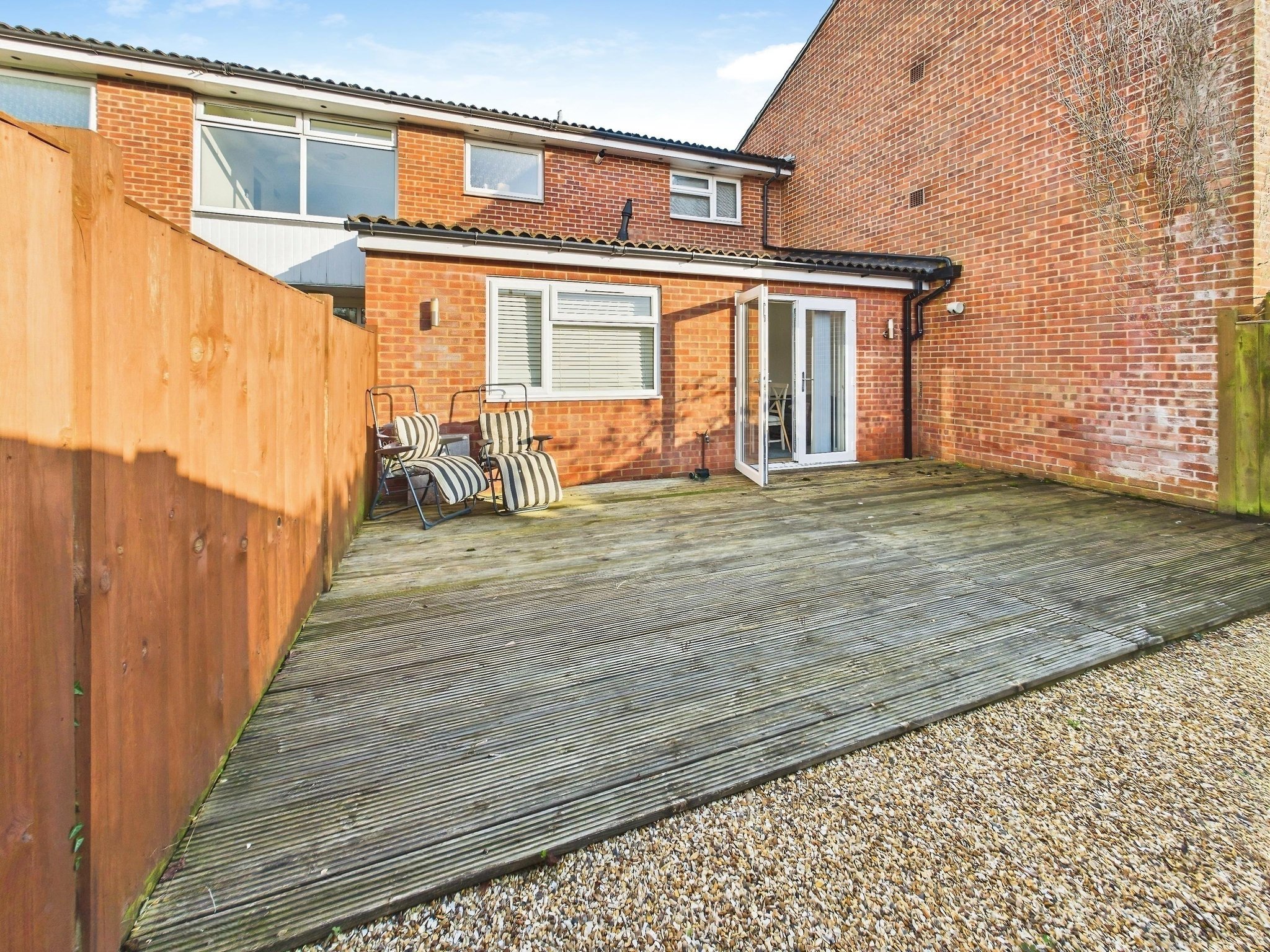 The private, enclosed garden is accessed from the lounge/diner and is bound by timber fencing. There is an area laid to shingle; a wooden decked terrace offers the ideal spot for al fresco dining.
