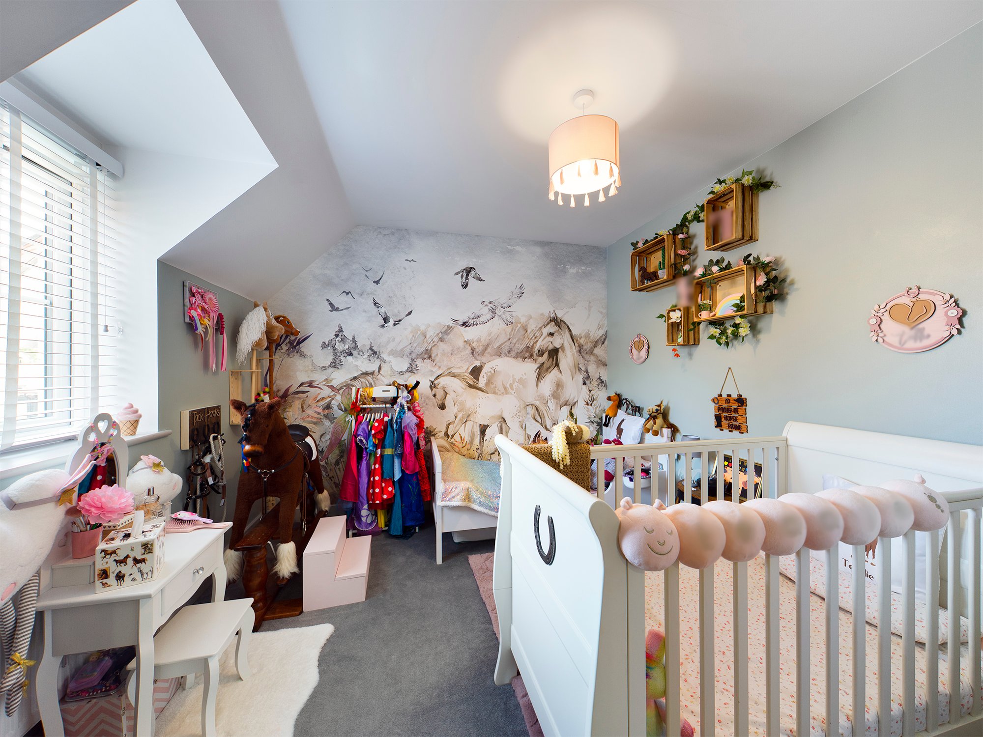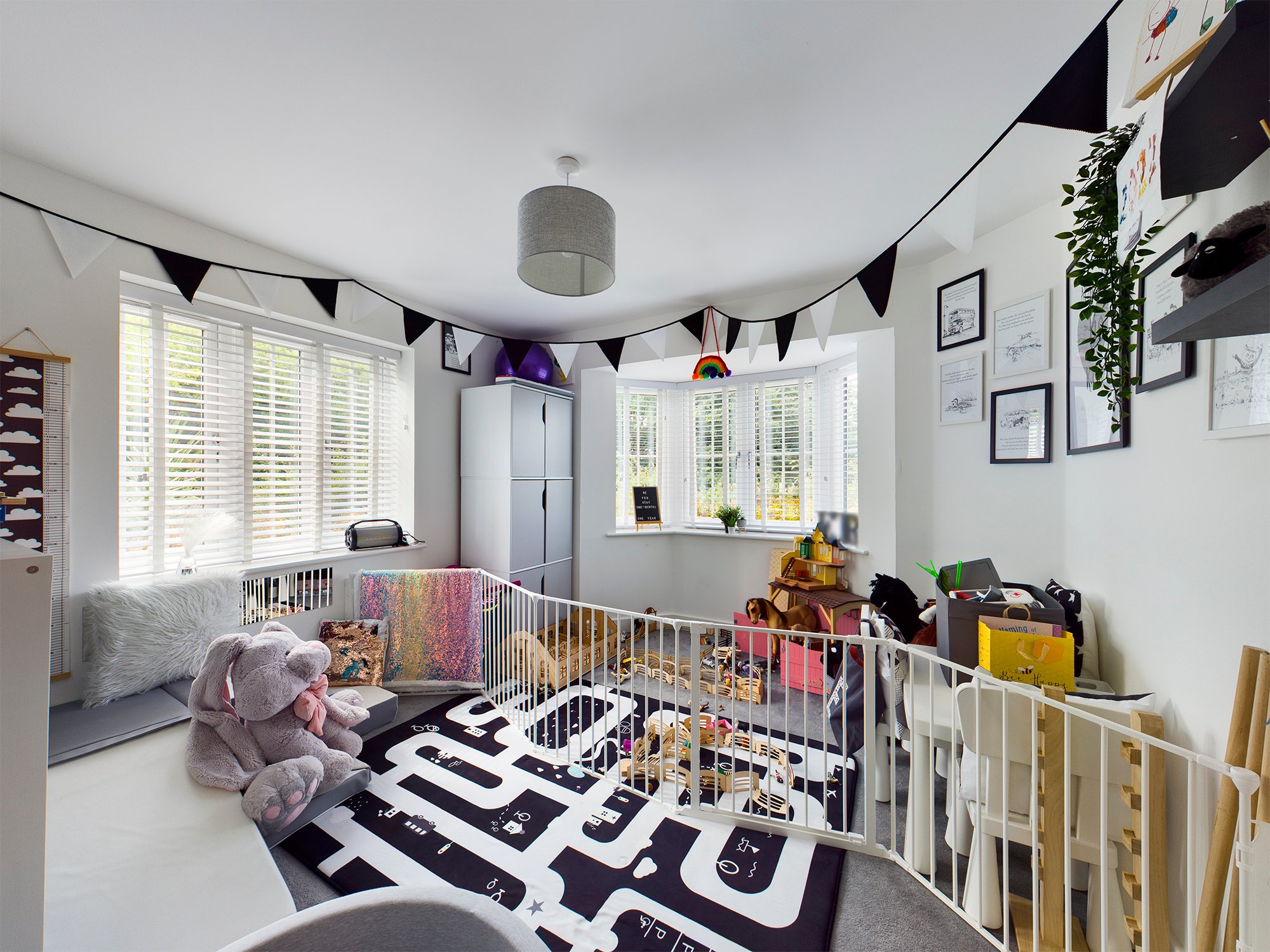 Smooth plastered ceiling, double glazed UPVC window to the front elevation and a double glazed bay window to the side elevation. Ample power points and underfloor heating with thermostat control.