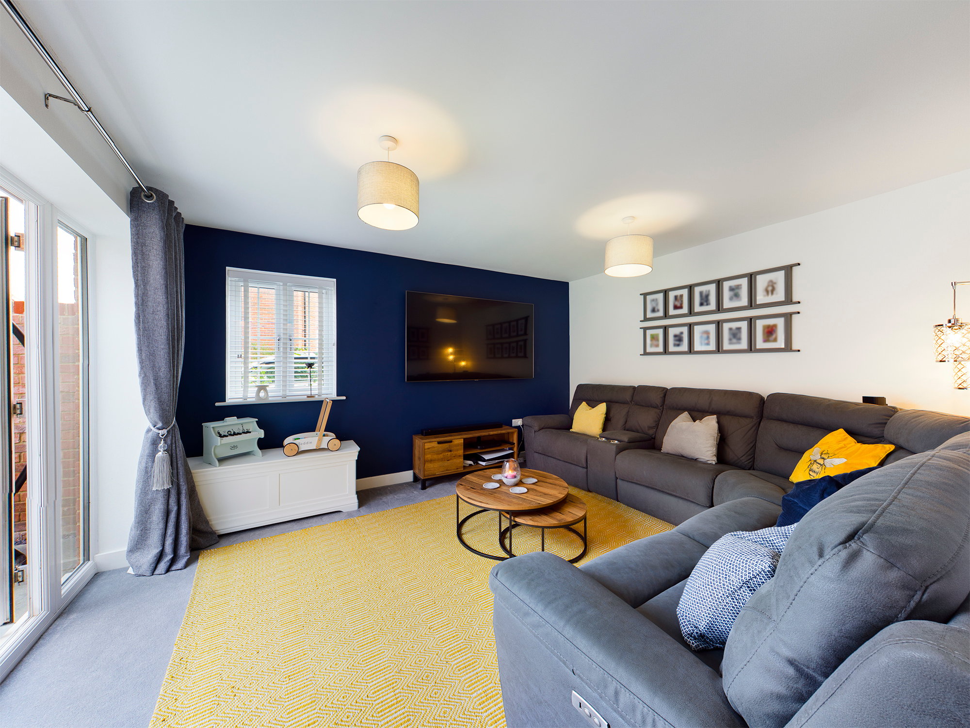 Smooth plastered ceiling, two ceiling lights, two double glazed UPVC windows to the side elevation, double glazed French doors to the garden. Ample power points and TV point.