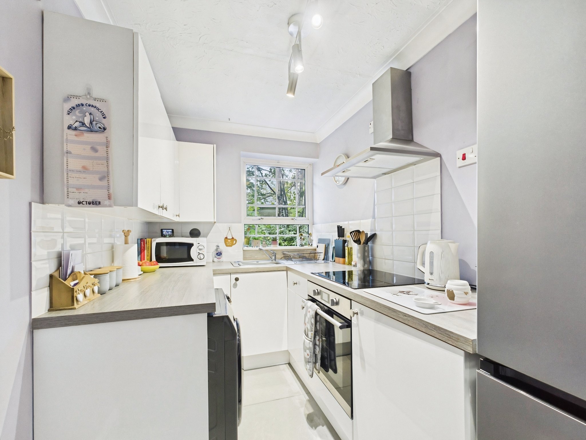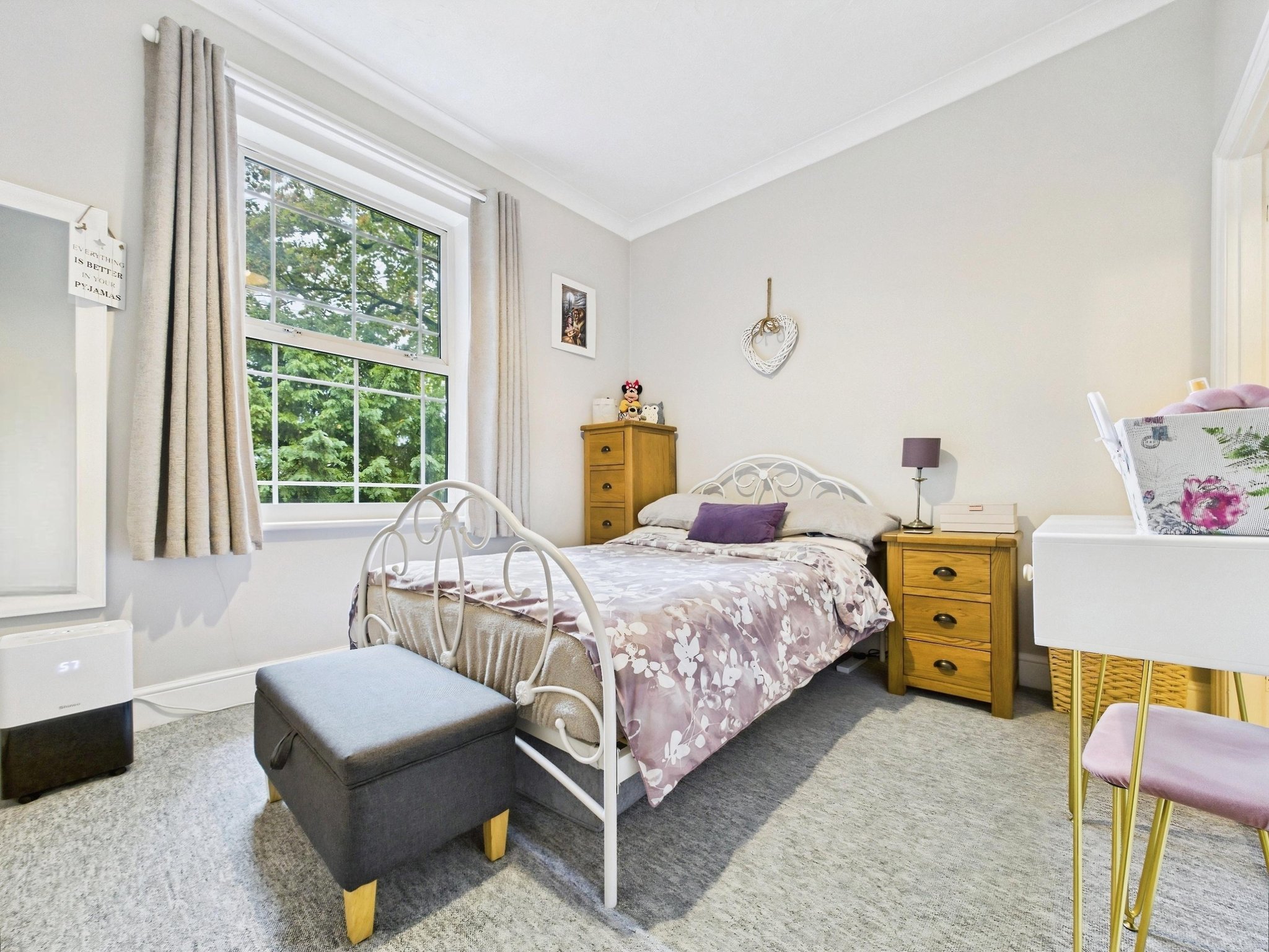 The well-proportioned bedroom, a haven for relaxion, offers a front elevation window. A series of fitted wardrobes and overhead lockers offer useful storage.