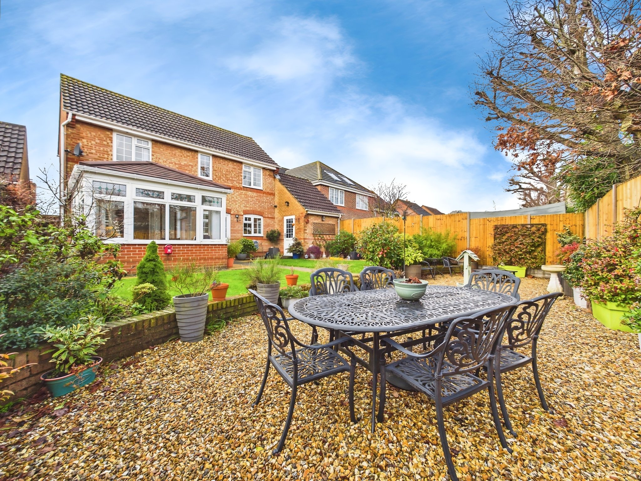 The landscaped rear garden is enclosed by timber fencing with a pedestrian gate at the side of the property. There is a small patio and seating area adjacent to the dwelling. Largely laid to lawn, this well maintained garden boasts beautifully planted borders containing an array of plants and shrubs. At the foot of the garden is a sizeable seating/entertaining area which is laid to shingle and perfect for al-fresco dining.